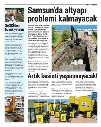 bırakmayacağız.” Bafra’da bulunan içme suyu ana terfi alındı. Enerji kesintisi çok uzun sürse Enerji