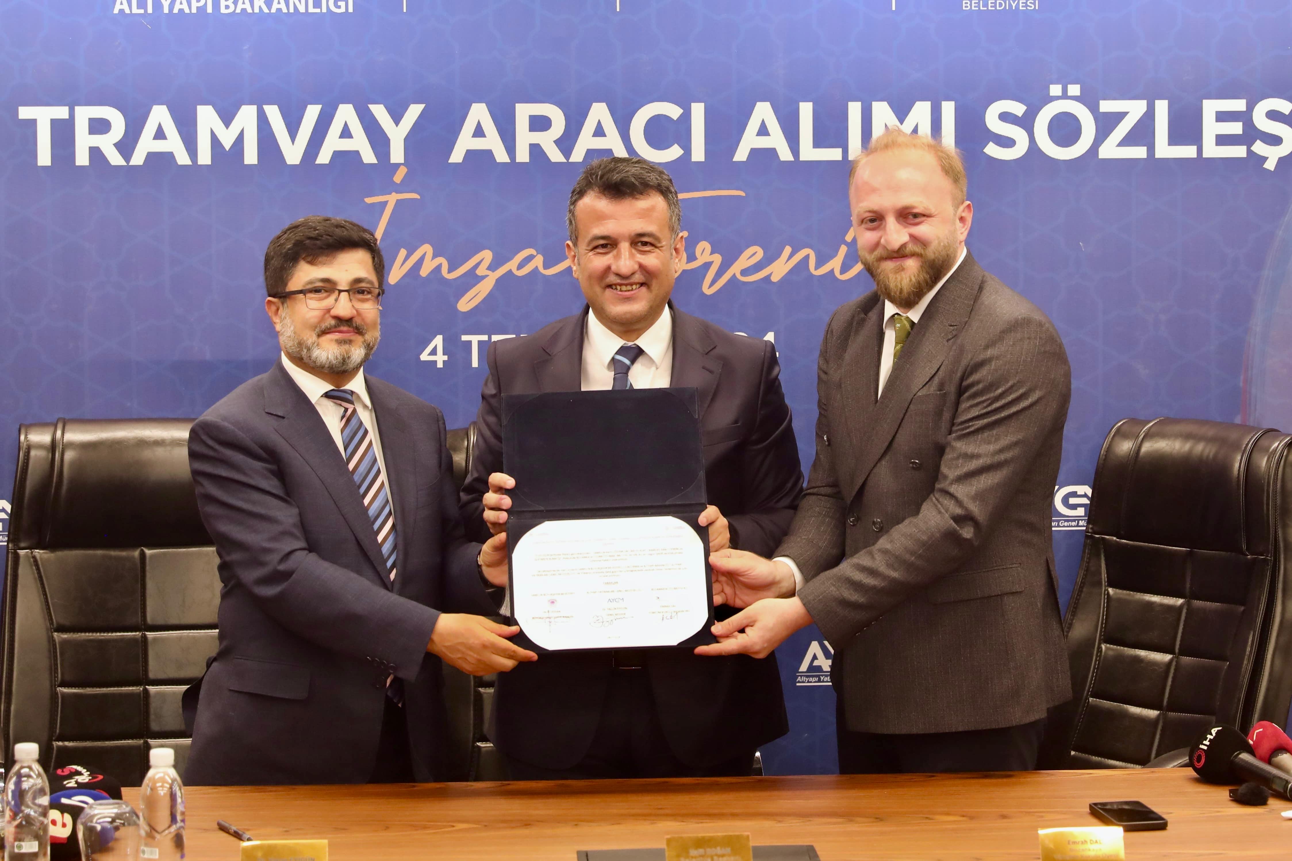 Samsun Büyükşehir Belediyesi, şehrin modern ve yaşanılabilir bir kent olma hedefine ulaşması için kararlılıkla çalışmalarını sürdürüyor. Bu doğrultuda, şehre kazandırılması planlanan 10 yeni tramvay aracının alımı için önemli bir adım atıldı. İlk tramvayın 24 ay içinde teslim edilmesi planlanırken her tramvay aracı ve seti için 200 milyon TL maliyet, toplamda 2 milyar TL’lik yatırım Samsun’a kazandırılıyor. 10 yeni tramvayın imza töreni, Samsun Büyükşehir Belediye Başkanı Halit Doğan, Altyapı Yatırımları Genel Müdürü Dr. Yalçın Eyigün ve Firma Yetkilisi Emrah Dal’ın katılımıyla Alo 153 Kent Yönetim Merkezi'nde gerçekleştirildi ve böylece ihale süreci resmi olarak sona erdi.