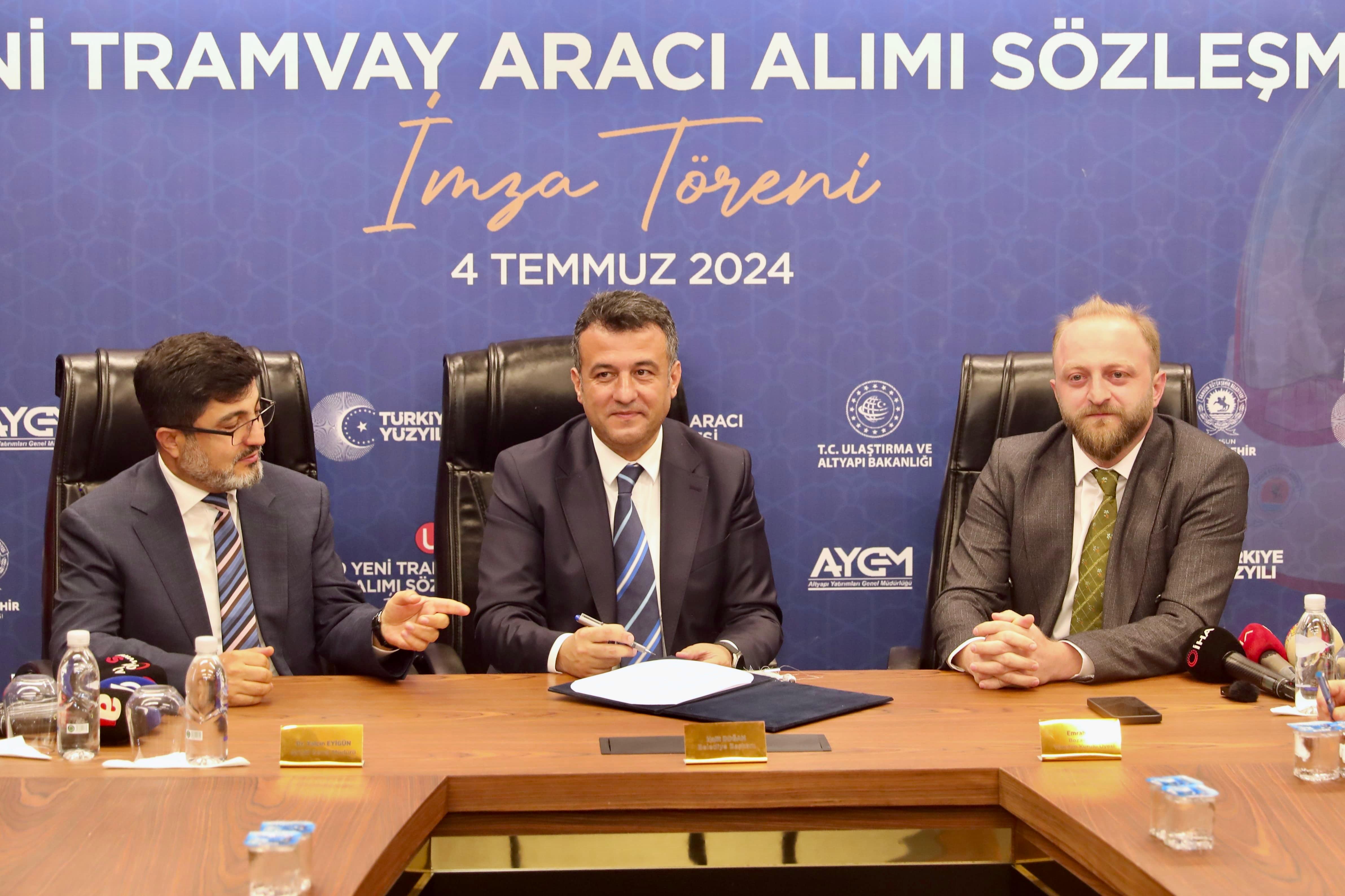 Samsun’da olmaktan ve 10 yeni tramvayı Samsun’a kazandıracak olmaktan dolayı duyduğu mutluluğu dile getiren Altyapı Yatırımları Genel Müdürü Dr. Yalçın Eyigün ise “Bizim için burada bulunmak büyük bir mutluluk. Sayın Cumhurbaşkanımızın takdiri ve talimatıyla bu önemli imzayı atmanın başlatıcısı olduk. Samsun Büyükşehir Belediyesi, Karadeniz'in önemli bir parçasıdır ve yeni tramvaylarımızla şehrimize önemli bir katkı sağlayacağız. Yeni tramvaylarımız yüzde 70 yerlilik oranıyla en yüksek yerlilik oranını sağlayacak. Ayrıca yüzde 10 eğimde sorunsuz bir şekilde hareket edebilecek kapasiteye sahip olacaklar. Yolcu konforunu düşünerek mevcut araçlardaki gelişim fırsatlarını değerlendireceğiz. Çift yönlü sürüş imkanı ve 466 yolcu kapasitesiyle şehir içi ulaşımını büyük ölçüde iyileştirecek olan 42 metre uzunluğundaki araçlar, sıkışıklıkları azaltacak ve yolcu konforunu artıracaktır. Halit Doğan Başkanımızın bu vizyonu ile daha birçok projeye imza atmayı planlıyoruz. Yeni tramvaylarımızın tüm Samsun halkına hayırlı olmasını diliyorum” ifadelerini kullandı.