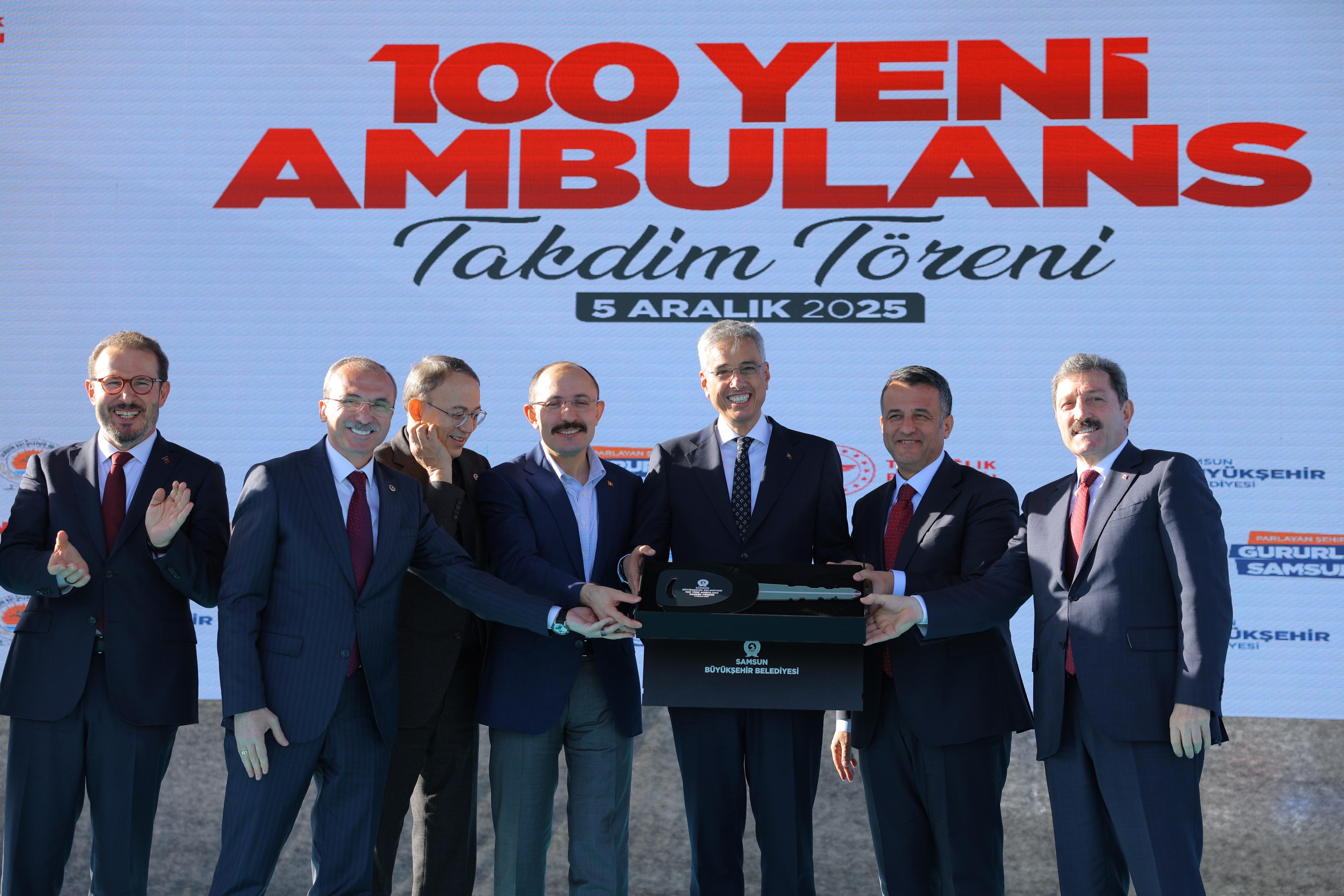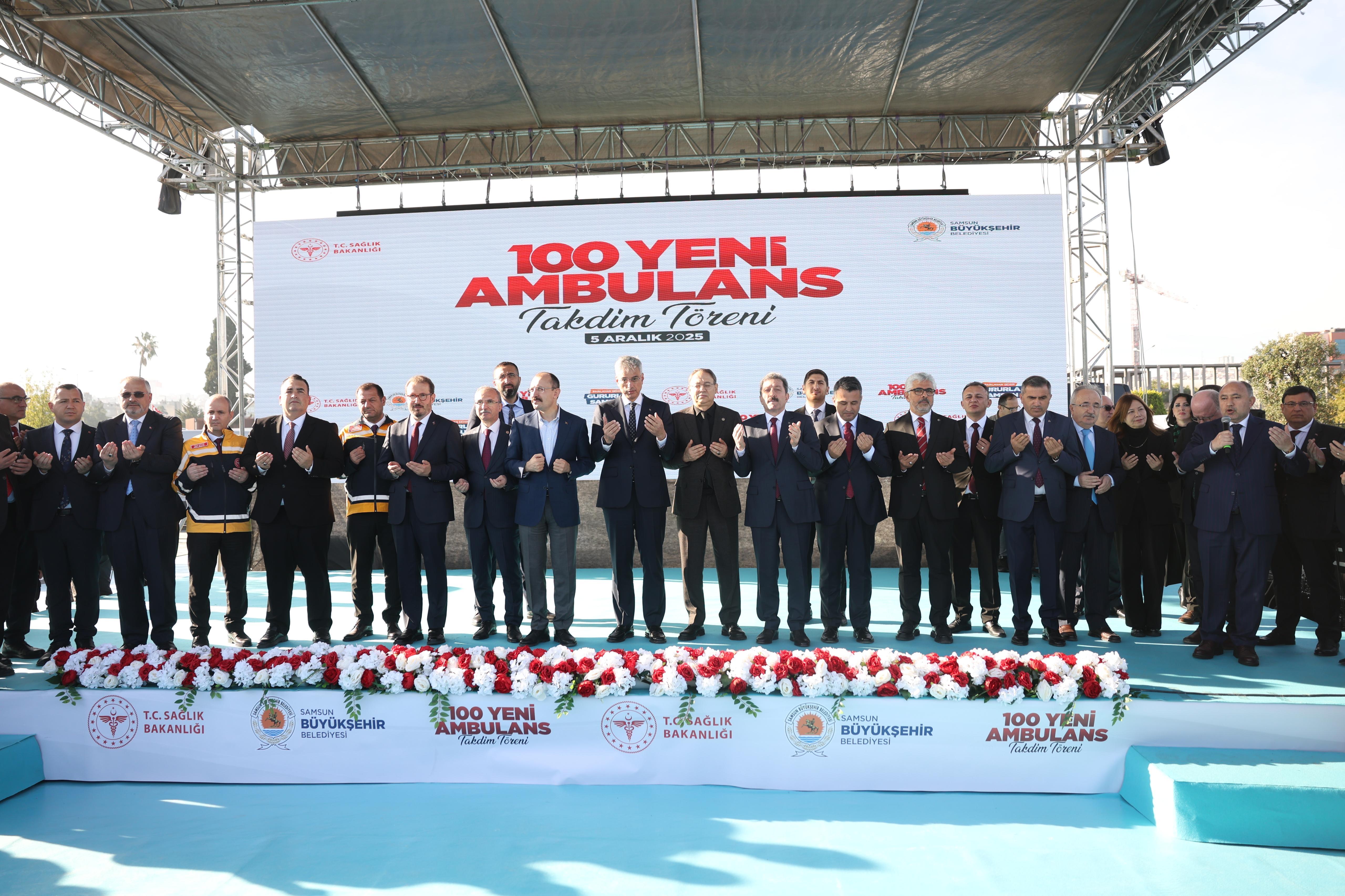 Samsun’un sağlık altyapısına önemli bir katkı sunmak amacıyla Samsun Büyükşehir Belediyesi tarafından kente kazandırılan modern donanımlı 100 yeni ambulans düzenlenen geniş katılımlı törenle İl Sağlık Müdürlüğüne teslim edildi. Teslim töreni, Sağlık Bakanı Prof. Dr. Kemal Memişoğlu’nun katılımıyla gerçekleştirildi. Programa ayrıca AK Parti Samsun Milletvekili, TBMM Plan ve Bütçe Komisyonu Başkanı Mehmet Muş, AK Parti Samsun Milletvekili Ersan Aksu, AK Parti Samsun Milletvekili Orhan Kırcalı, MHP Genel Başkan Yardımcısı ve Samsun Milletvekili İlyas Topsakal, Samsun Valisi Orhan Tavlı, Samsun Büyükşehir Belediye Başkanı Halit Doğan, il protokolü ve çok sayıda vatandaş katıldı.