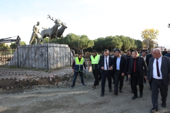 Alaçam Geyikkoşan Caddesi’ndeki çalışmaları da inceleyen Başkan Halit Doğan, “Alaçam, tarihi dokusu ve doğal güzellikleriyle çok kıymetli bir ilçemiz. Biz de bu güzel ilçemizde alt ve üstyapı çalışmalarımızı titizlikle sürdürüyoruz. İlçemizin en önemli turistik noktalarından biri olan ve hemşehrilerimizin sıkça ziyaret ettiği Fatih Mahallesi Geyikkoşan Caddesi’nde yol yapım çalışmalarımıza devam ediyoruz. Gidiş–dönüş toplam 4 bin metre uzunluğa ve 6,5 metre genişliğe sahip yolun 3 bin 550 metrelik bölümünde beton dökümünü tamamladık. Aynı bölgede kaldırım çalışmalarımıza da başlamış bulunuyoruz. Çalışmalarımız tamamlandığında, bu yol hem turistik açıdan hem de günlük ulaşım yönünden bölgeye önemli bir değer katacak” diye konuştu.