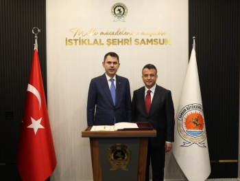 Cumhuriyet tarihinin en büyük sosyal konut hamlesi olarak hayata geçirilen “Yüzyılın Konut Projesi” için Samsun’a gelen Çevre, Şehircilik ve İklim Değişikliği Murat Kurum’u Samsun Büyükşehir Belediye Başkanı Halit Doğan makamında ağırladı.
