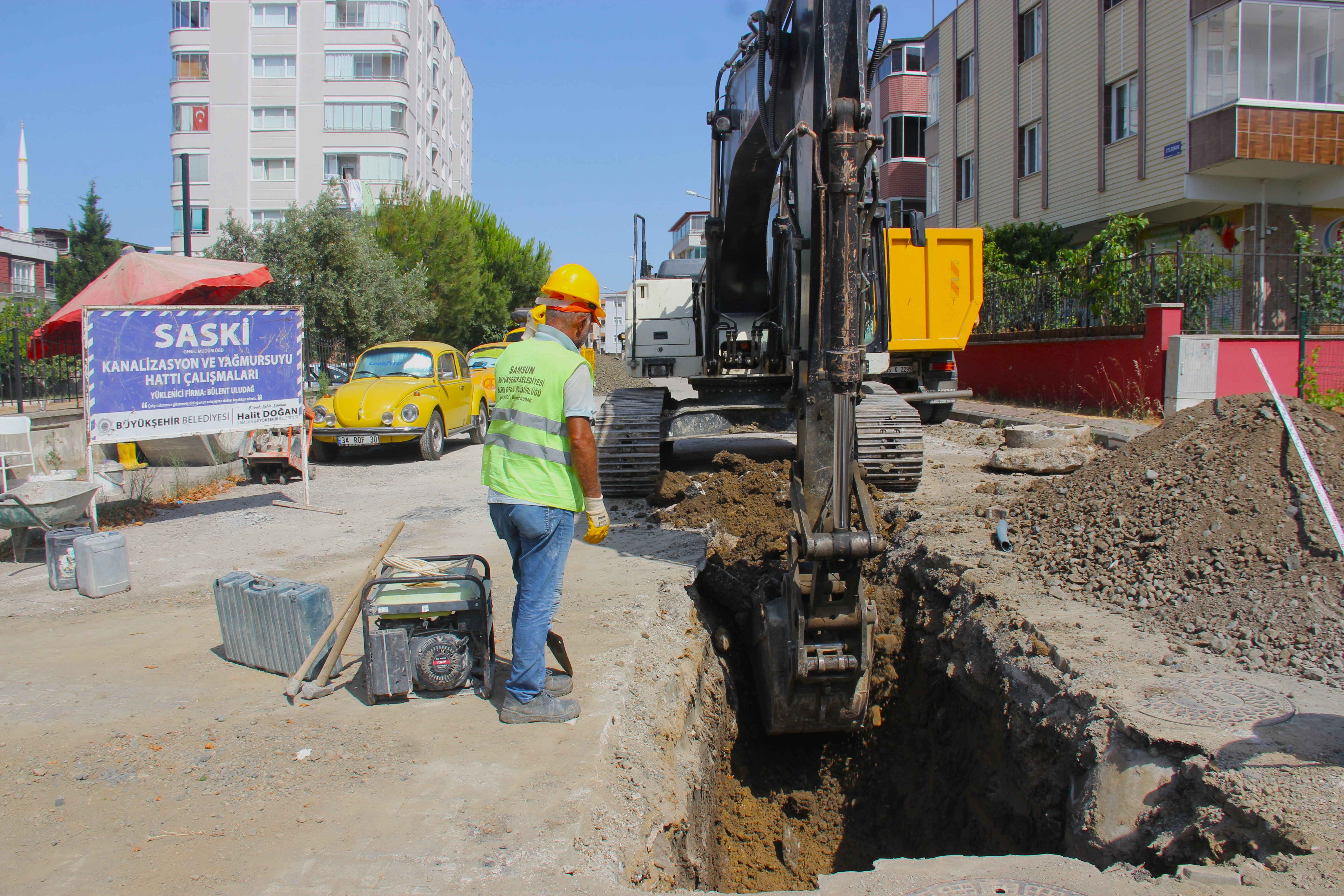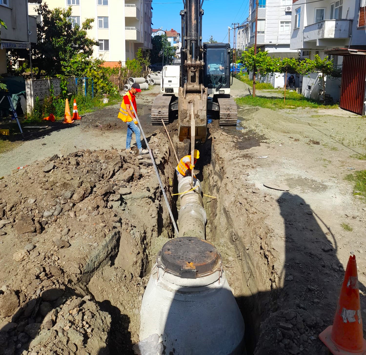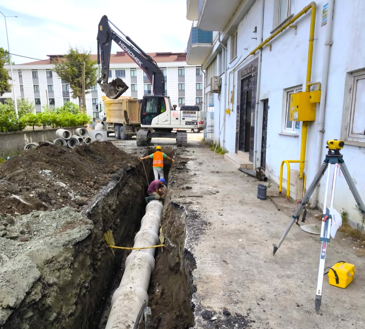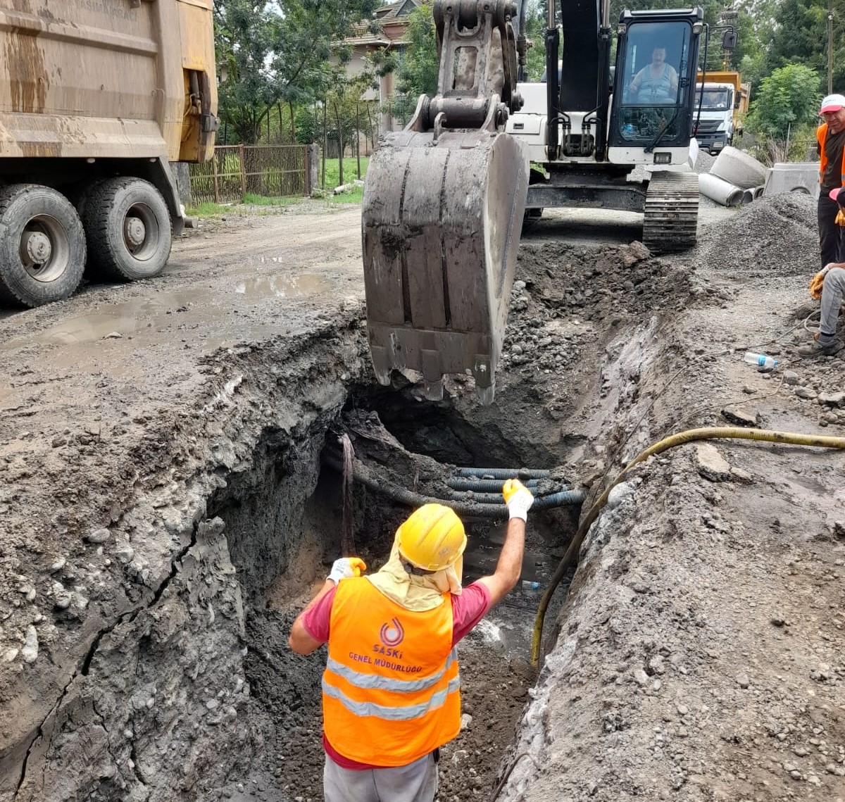 Terme İlçesi Bahçelievler Mahallesi, Şehit Hamdi Özübek Sokak’ta da 600 mm çapında 300 metre ve Cumhuriyet Mahallesi Adalı Sokak’ta 300 mm çapında 420 metre uzunluğundaki kanalizasyon şebekesi hatlarını yenileyen SASKİ; Çarşamba İlçesi Kirazlıçay Mahallesi Limon Sokak ile Yeşilırmak Caddesi’nde 400 mm çapında ve 600 metre uzunluğunda atık su hattı yapıyor.