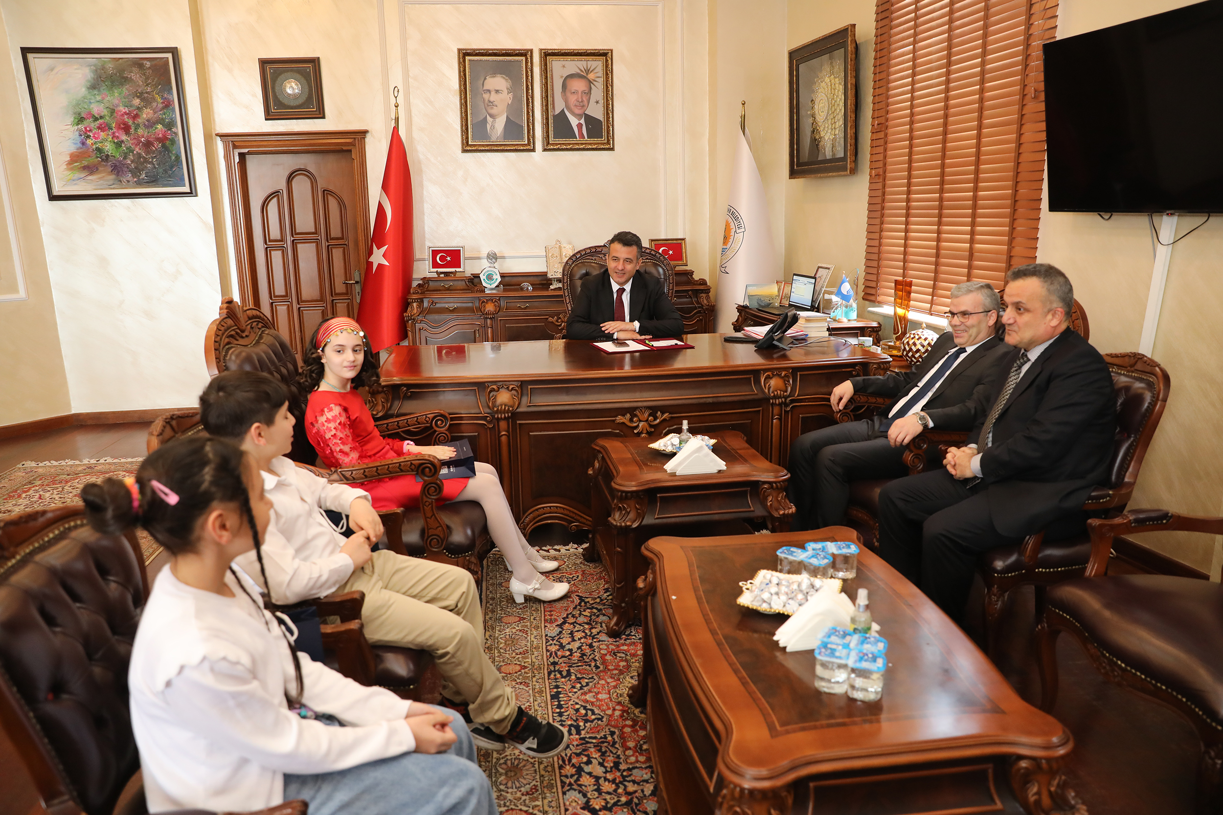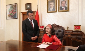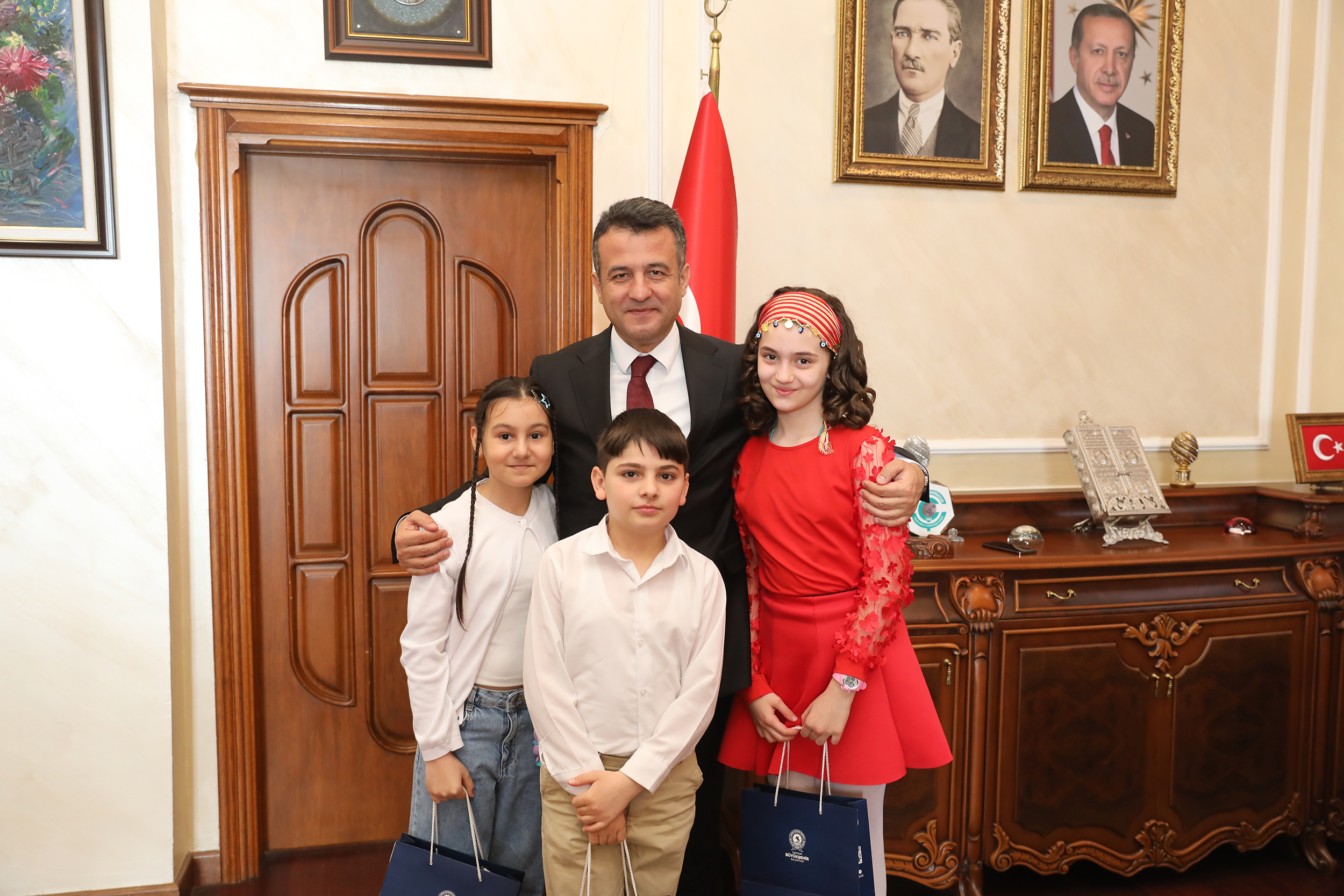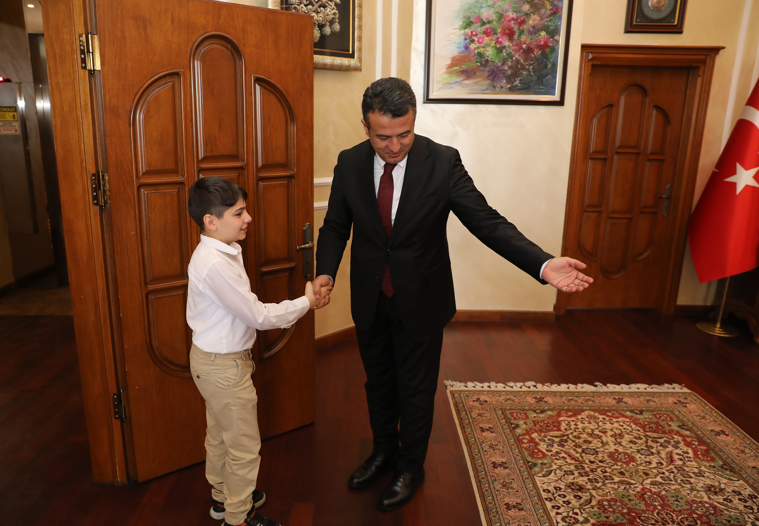 23 Nisan Ulusal Egemenlik ve Çocuk Bayramı’nda Samsun Büyükşehir Belediyesi’ne gelen Abdullah Paşa İlkokulu 4’üncü sınıf öğrencileri Talat Paşa Küçük, Elif Rana Midilli ve Işıl Su Ayaz’ı Büyükşehir Belediye Başkanı Halit Doğan ile görüştü. Ardından Başkan Doğan, makam koltuğunu 3 çocuğa bıraktı. Sırayla başkanlık makam koltuğuna oturan çocuklar kentle, eğitimle, kültür ve sanatla ilgili talep ve isteklerini belirtti. Öğrencilerin, 23 Nisan Ulusal Egemenlik ve Çocuk Bayramı’nı kutlayan Başkan Doğan, “Türkiye’nin geleceği olan çocuklarımızın heyecanlarına ortak olup millet olarak bayramımızı büyük bir coşkuyla kutluyoruz. Bu makamların asil sahibi yarının büyükleri olacak siz çocuklarımızsınız. İstekleriniz, önerileriniz, düşünceleriniz bizim için her zaman çok önemli, çok kıymetli. Bunlar hakkında gerekli birimlerimizle görüşüp, hızla çalışmalar gerçekleştireceğiz. Gazi Mustafa Kemal Atatürk ve silah arkadaşlarının Kurtuluş Savaşı’nı başlatmak üzere ilk adımı attığı, ilk meşalenin yakıldığı kent olan Samsunumuzda geleceğimiz olan çocuklarımız için her alanda çalışmaya devam edeceğiz” diye konuştu.