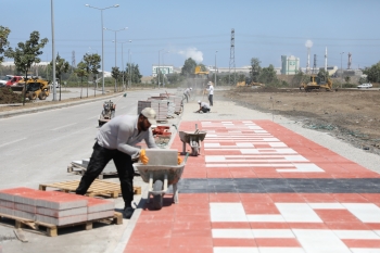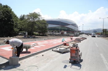 Stadyum yolu “Kırmızı-Beyazlı” kaldırımlarla donatılıyor