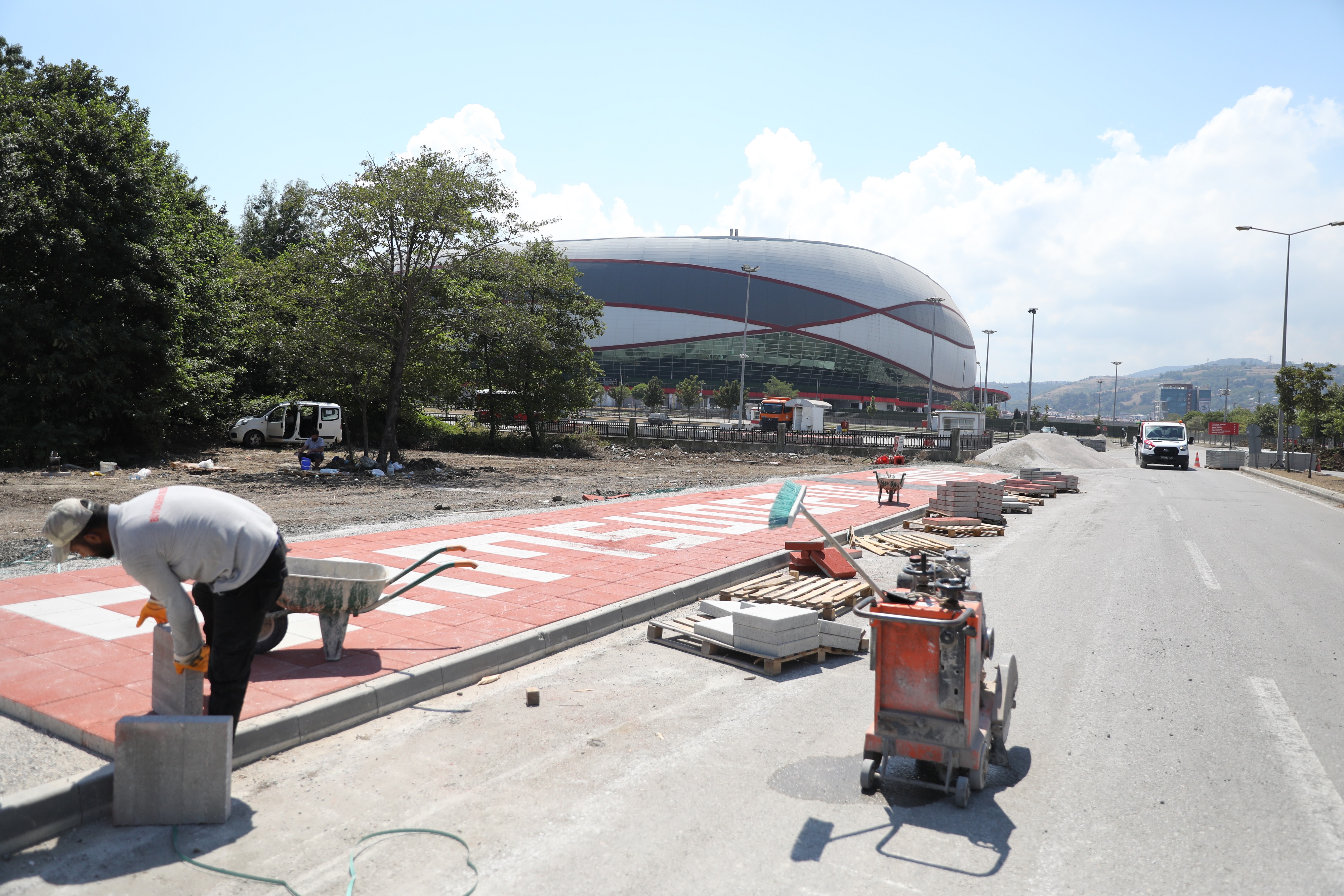 Yol çalışmalarının yanı sıra, şehrin kırmızı-beyaz armaya olan bağlılığı da göz önünde bulundurularak, stadyumun yan yolları “Samsunspor” yazılı kırmızı beyazlı kaldırımlarla donatılıyor. Bu detay, şehirdeki spor kültürüne katkıda bulunacak ve taraftarların stadyumla olan bağlantısını güçlendirerek şehre estetik bir dokunuş katacak.