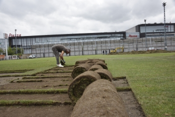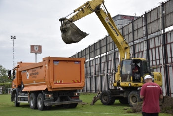 Büyükşehir Belediye Başkanı Halit Doğan’ın talimatıyla çalışmalara başlayan ekipler, ilk olarak eski çimleri kaldırdı, ardından kazı çalışmasına başladı. Yaklaşık 65 santimetre derinliğinde yapılacak kazı sonrası sahanın altyapısı ve toprağı yenilenecek. Ardından saha yeniden çimlendirilecek.