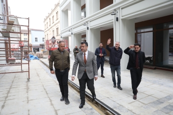 Şehrin tarihine sahip çıkan ve şehrin hafızasında önemli yeri olan lokasyonlarda dikkat çeken projelere imza atan Samsun Büyükşehir Belediyesi, Belediye Ticaret Merkezi projesi ile de Saathane Meydanı’na yepyeni bir soluk kazandırıyor. Kullanım ömrünü tamamladığı için yıkılan 5 katlı hizmet binasının yerine inşa edilen Belediye Ticaret Merkezi Projesi’nde tüm hızıyla süren çalışmalar tamamlanmak üzere. Projeyi yerinde inceleyen Başkan Doğan, tarihi dokuya uygun olarak şehre hizmet verecek bir merkezin hayata geçirileceğini vurguladı.