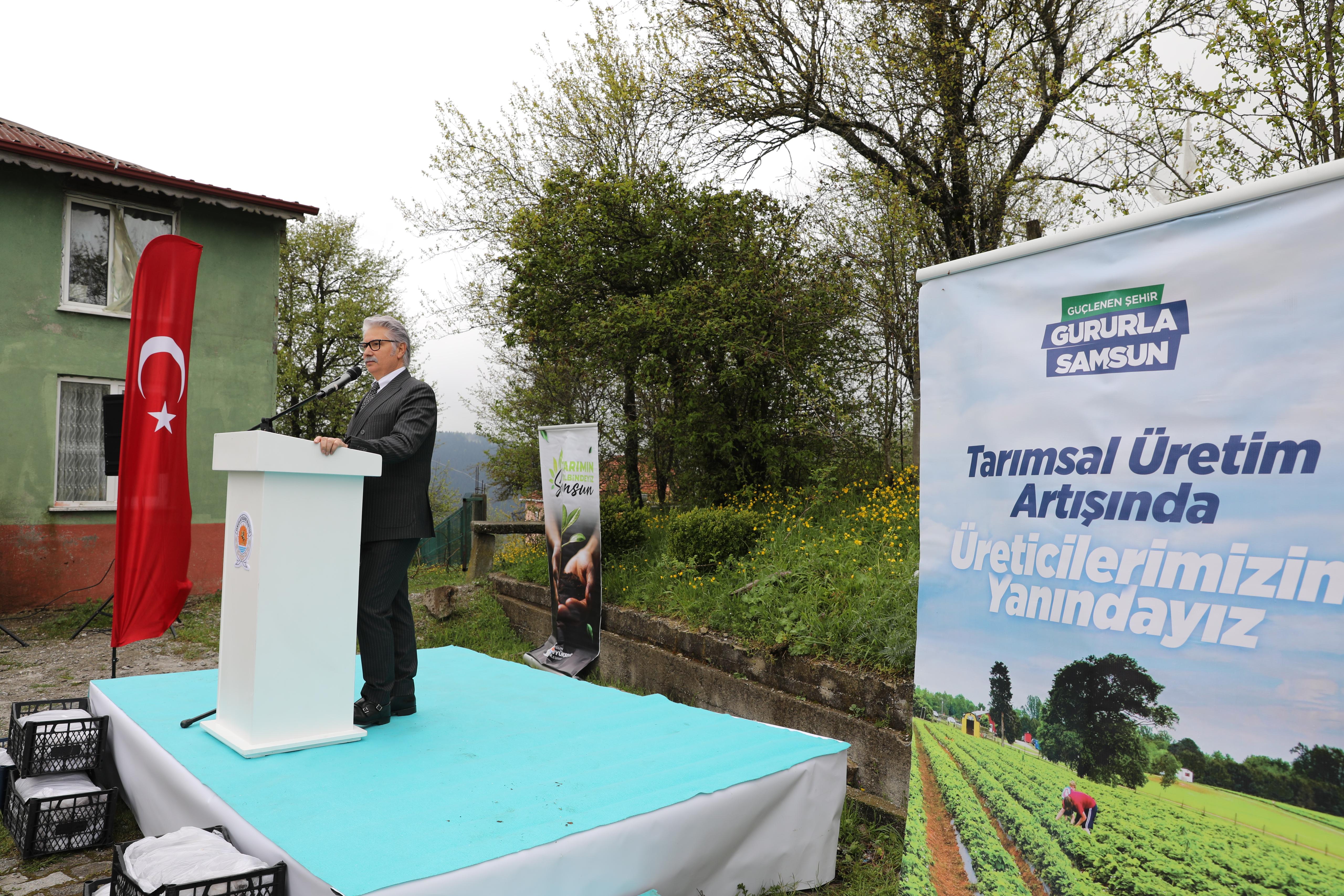 Samsun Büyükşehir Belediyesi, kentte tarım alanlarının genişlemesi ve üreticilerin desteklenesi noktasında çalışmalarını aralıksız sürdürüyor. Bu kapsamda çiftçilerle iş birliği ile Alaçam Dürtmen Yaylası Çilek Yetiştiriciliğini Geliştirme Projesi hazırlandı. Proje için Alaçam’da düzenlenen törene Alaçam Kaymakamı Fatih Kayabaşı, Samsun Büyükşehir Belediyesi Genel Sekreter Yardımcısı Necmi Çamaş, Alaçam Belediye Başkanı Ramazan Özdemir, Alaçam Ziraat Odası Başkanı Hüseyin Sönmez ve üreticiler katıldı.