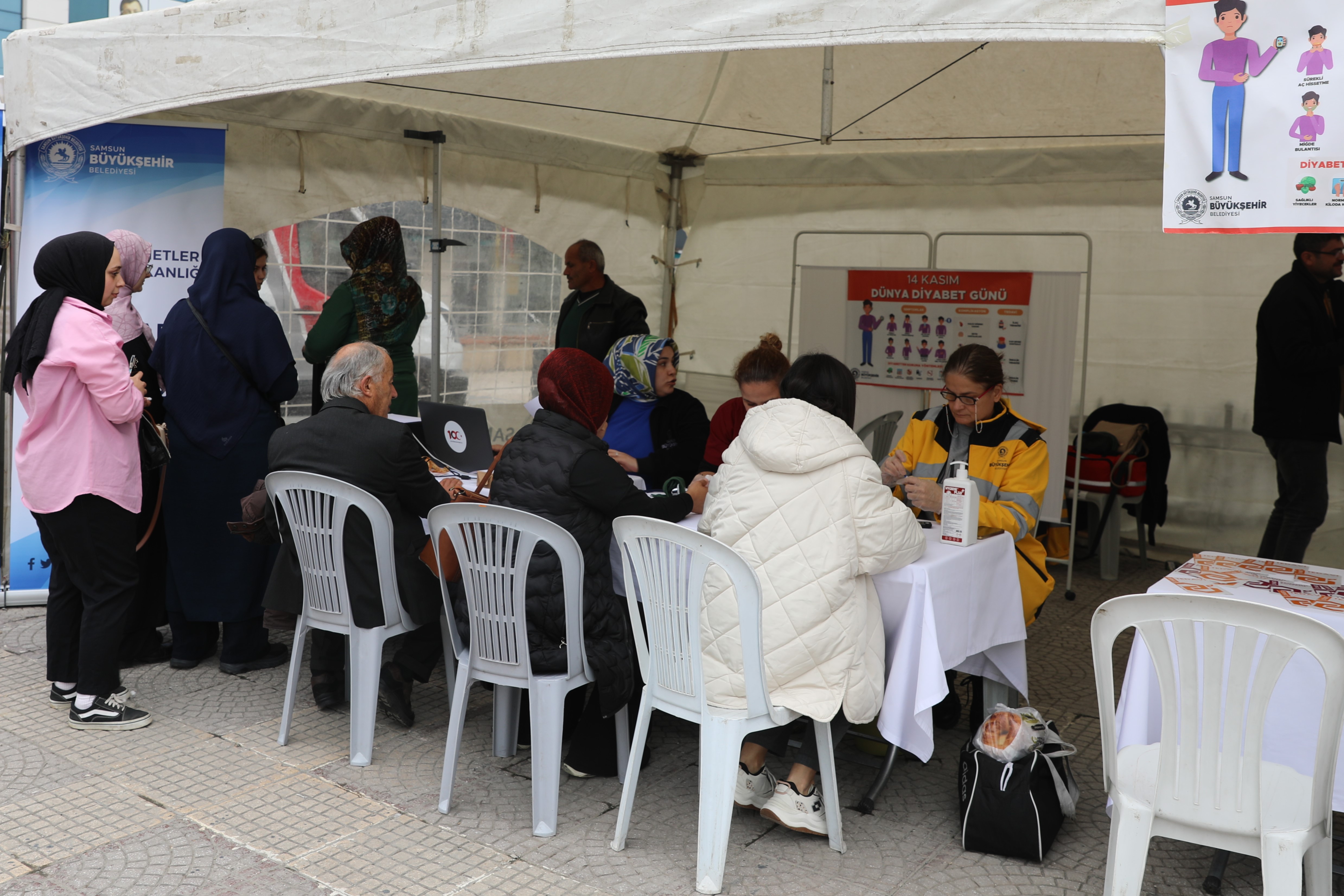 Sağlıklı Kent hedefiyle çalışmalarını sürdüren Samsun Büyükşehir Belediyesi, 14 Kasım Dünya Diyabet Günü nedeniyle Karadeniz Diyabet Derneği ile birlikte Cumhuriyet Meydanı’nda vatandaşlara ücretsiz kan şekeri ölçümü ve vücut analizi yaptı. Saat 12.00 ile 17.00 arasında süren etkinlik vatandaşlar tarafından büyük ilgi gördü. Diyabet hastalığının erken teşhis edilmesi ve önlenmesi amacıyla düzenlenen etkinlikte vatandaşlar, uzman sağlık personelince ücretsiz olarak kan şekeri ölçümü yaptırarak vücut kitle endeksi ve diğer vücut analizleri hakkında bilgi aldılar.