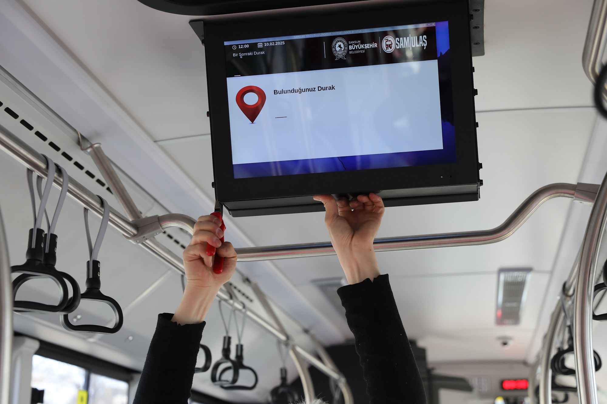 Samsun Büyükşehir Belediyesi, yaşamın her alanında özel gereksinimli bireylere hizmet üretmeye devam ediyor. Kent içi toplu ulaşımda engelli bireylerin yaşadıkları zorluklar ve taleplerinden yola çıkan Büyükşehir Belediyesi, hızlı çözümler üretip engelleri bir bir ortadan kaldırıyor. Bu kapsamda Samsun Büyükşehir Belediyesi’nin iştiraki olan SAMULAŞ A.Ş. tarafından kentteki toplu taşımada yer alan otobüslerde engelli bireyler için özel bir çalışma yapıldı. SAMULAŞ A.Ş.’nin teknik personelleri tarafından ‘Otobüs Yolcu Bilgilendirme Sistemi’ kuruldu. İlk aşamada, E1 hattında hizmet veren 10 körüklü otobüsün içinde bulunan ekranlara özel bir cihaz yerleştirilerek SAMULAŞ A.Ş. teknik personelleri tarafından üretilen yerli yazılım entegre edildi. Hat güzergahındaki otobüsün anlık olarak bulunduğu mevcut konumu belirleyerek durakları sesli ve görüntülü şekilde bildiren sistem, hizmet vermeye başladı. Görüntülü ve sesli bilgilendirme sisteminin özellikle toplu taşıma kullanan görme ve işitme engelli bireyler için büyük kolaylık sağlayacağı belirtildi. İlk olarak 10 körüklü otobüste kullanılan sistemin etap etap tüm otobüslerde aktifleştirilmesi planlanıyor.