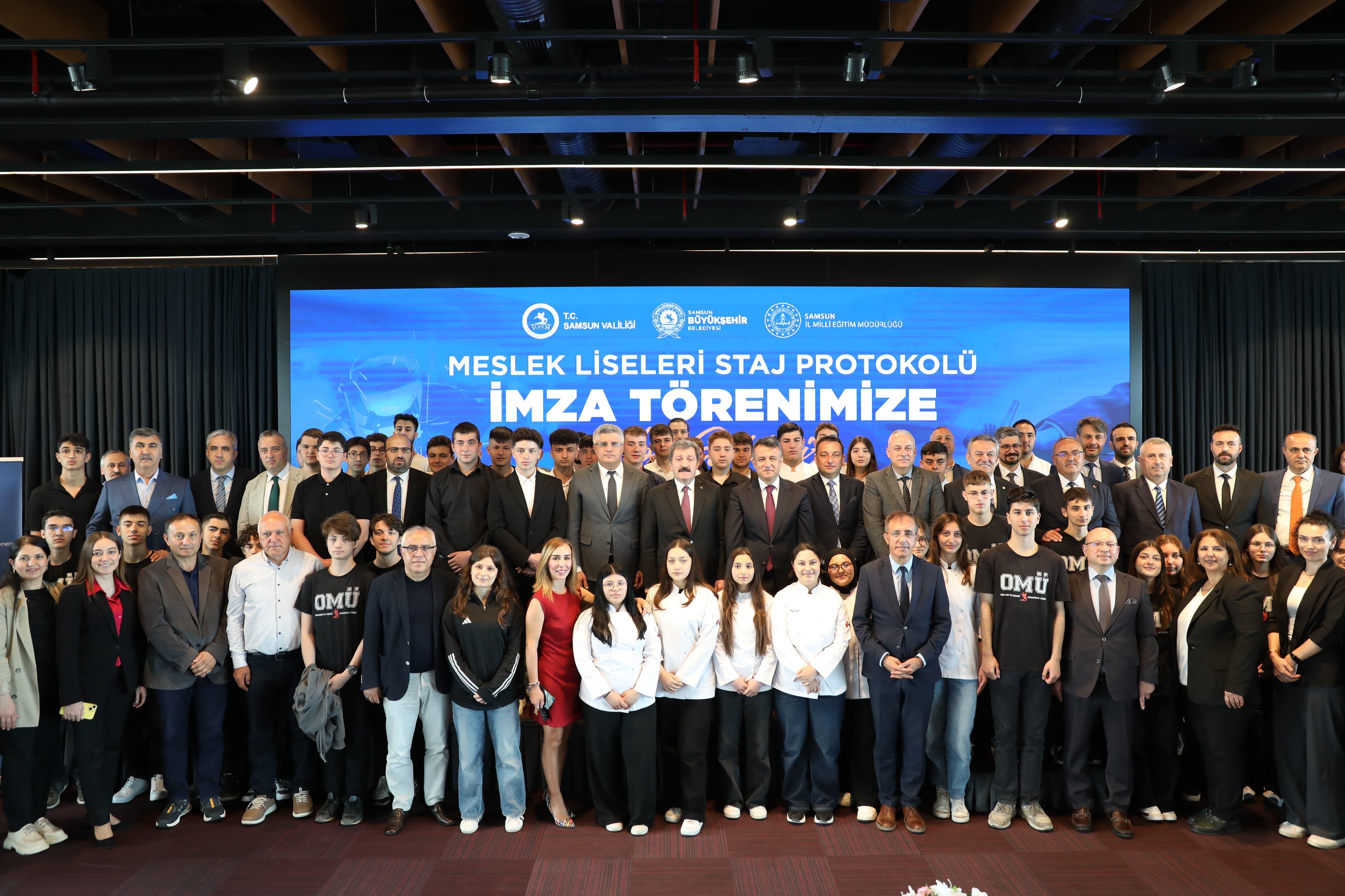 Genç nüfusun istihdam edilebilirliğini artırmak, bölgedeki sektörlerin nitelikli iş gücü ihtiyacını karşılamak ve ülkenin ekonomik kalkınmasına katkı sağlamak amacıyla Samsun Büyükşehir Belediyesi tarafından hazırlanan “Mesleki Hareketlilik” projesi kapsamında Milli Eğitim İl Müdürlüğü ile Meslek Liseleri ile iş birliği protokolü imzalandı. Törene Samsun Valisi Orhan Tavlı, Samsun Büyükşehir Belediye Başkanı Halit Doğan, Samsun İl Milli Eğitim Müdürü Murat Ağar, kurum ve kuruluş temsilcileri, Büyükşehir Belediyesi bürokratları, okul müdürleri ve öğrenciler katıldı.