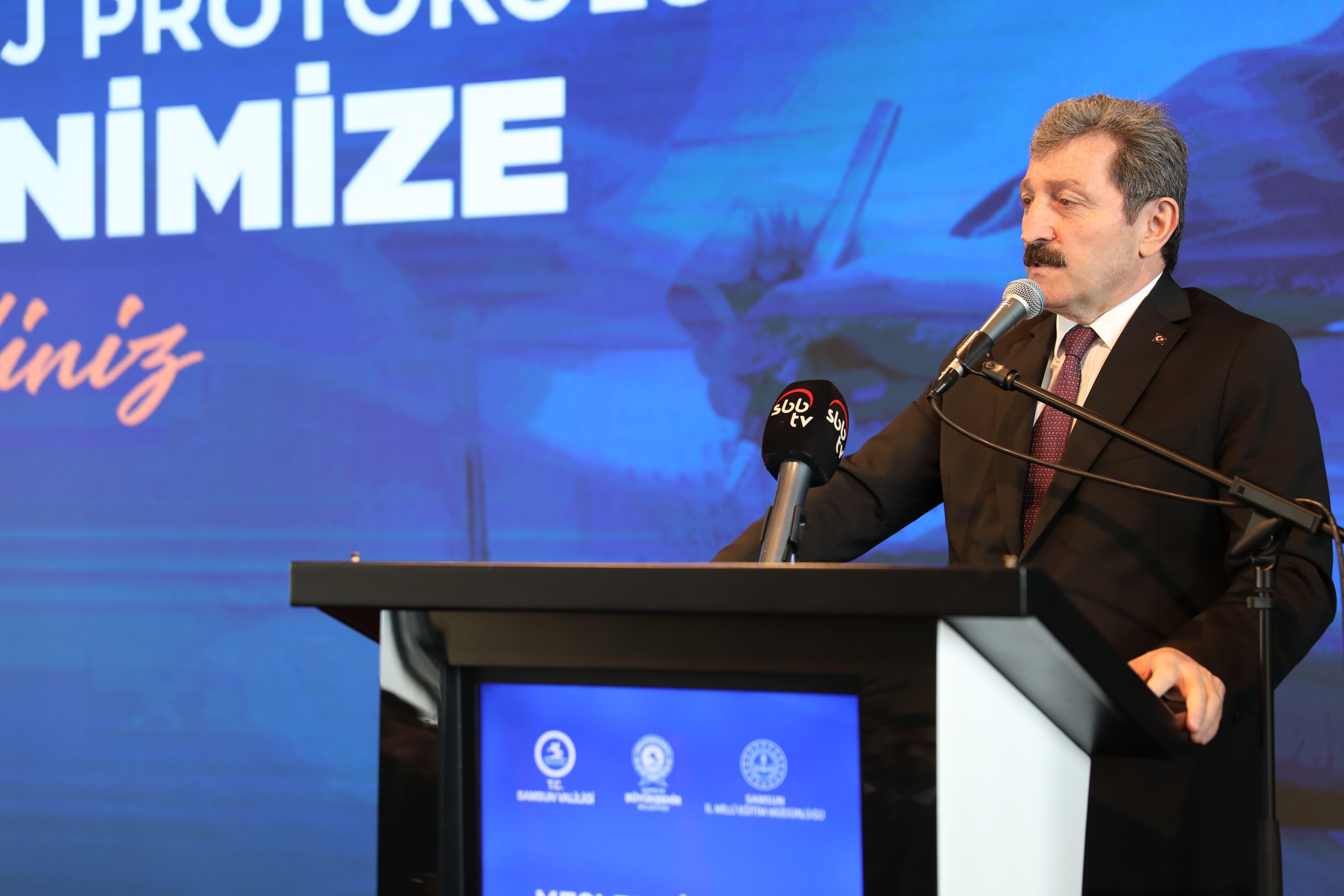 Samsun Milli Eğitim İl Müdürü Dr. Murat Ağar, “Mesleki eğitimin geliştirilmesi Türk Milli Eğitim sisteminin de en önemli amaçlarından biri. Bu kapsamda bakanlığımızca son yıllarda çok kapsamlı çalışmalar yürütülüyor. Ama bunların en önemlisi Sayın Cumhurbaşkanımızın imzası ile Mesleki Eğitim Politikalar Belgesi’nin yayınlanmasıydı. Bu belgenin yayınlanmasıyla mesleki eğitimde hareketlilik iş birliği ve istihdam çok farklı bir boyuta döndü. Mesleki Eğitim Politikalar Belgesi’nin özünü de kurumlar arası iş birliği oluşturuyordu. Bugün burada meslek liselerimiz ile protokol imzalıyoruz. Bu tarz iş birlikleri bir taraftan öğrencilerimizin istihdam edilebilirliğini güçlendiriyor ama en az onun kadar önemli bir konu da bu okullara başlayan öğrencilerin başarı temelinde motivasyonunu artırıyor. Şu anda imzalan protokol kapsamında öğrencilerimiz şunu bilecek ki artık okula başladıklarında Samsun’daki tüm kaynaklar, tüm yatırımlar öğrencilerimizin hizmetlerine sunulmuş ve bu kapsamda başarılı bir şekilde mezun olduklarında istihdamla ilgili somut adımlar atılmış olacak. Ben bu projeyi hayata geçiren tüm herkese teşekkür ediyorum” dedi.
