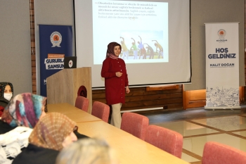 Samsun Büyükşehir Belediyesinde görevli diyetisyen tarafından yaşlılara nasıl beslenmeleri gerektiği, sağlıklı beslenmenin önemi ve kaliteli yaşlanmada sağlıklı beslenmenin rolü anlatıldı. Katılımcılar beslenme ve porsiyon kontrolü ile ilgili merak ettiği tüm soruları sorup cevaplarını öğrenme fırsatı buldu.
