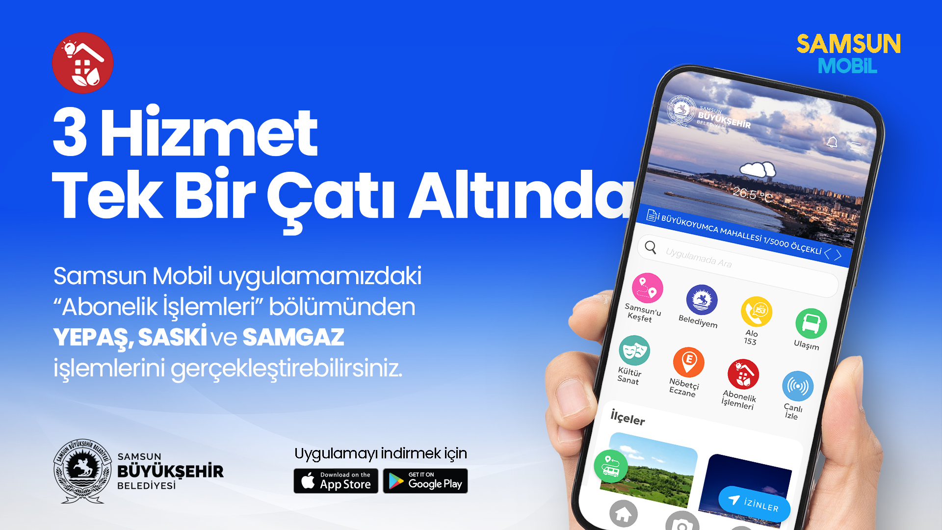 Samsun Büyükşehir Belediyesi, vatandaşların ihtiyaçlarına yönelik sürekli olarak geliştirilen bu uygulama ile şehir yaşamını daha da kolaylaştırmayı amaçlıyor. Uygulama sayesinde vatandaşlar, çeşitli abonelik işlemlerini hiçbir yere gitmeden yalnızca birkaç dokunuşla uygulama üzerinden gerçekleştirebilecekler.