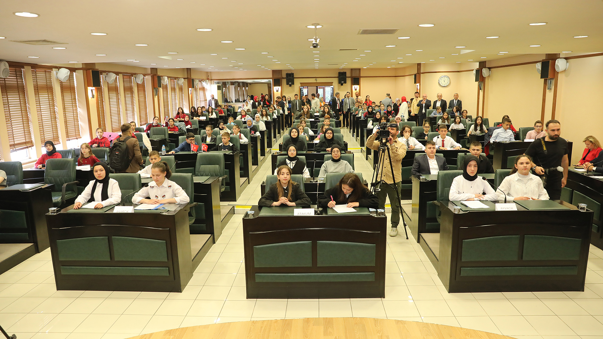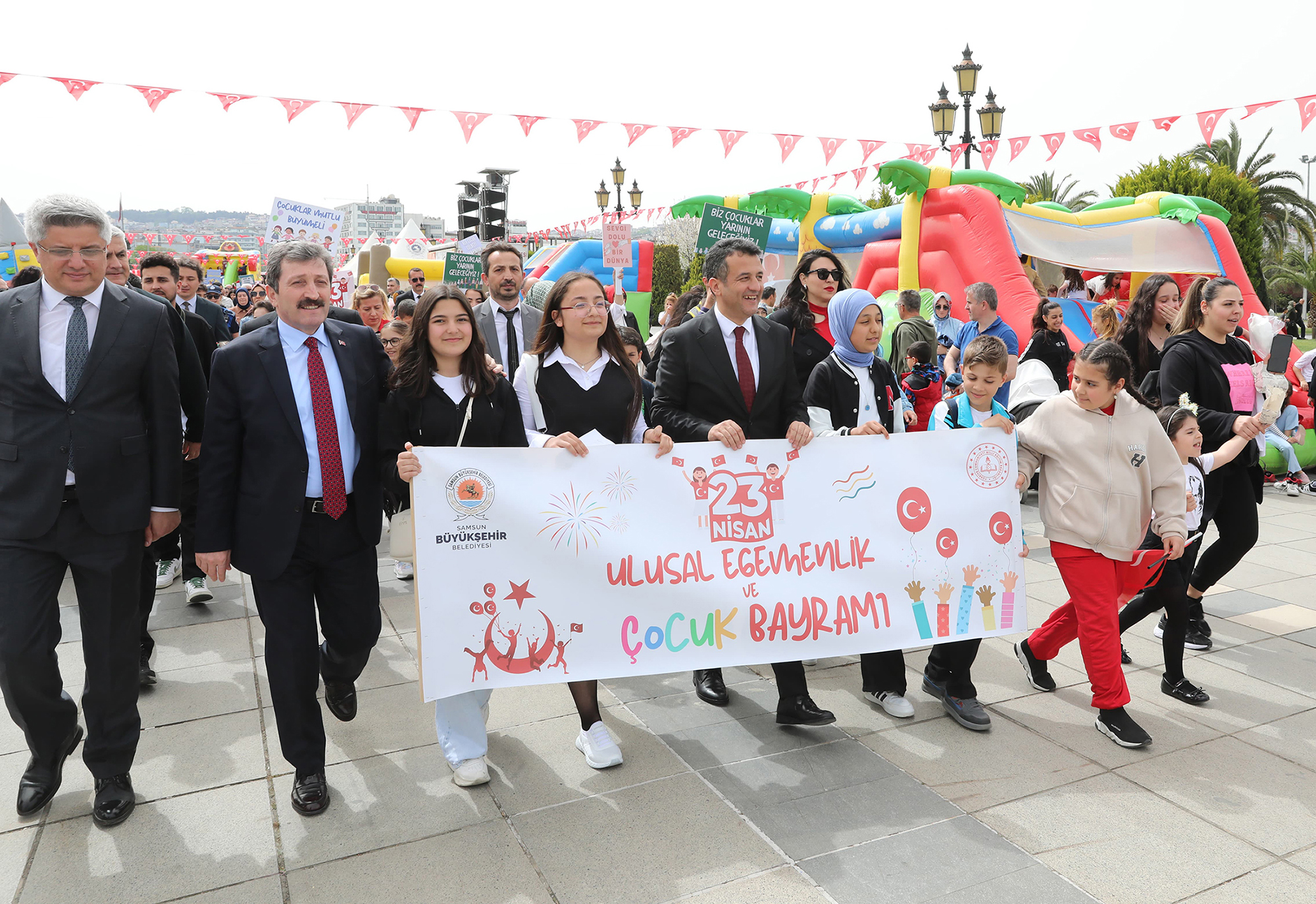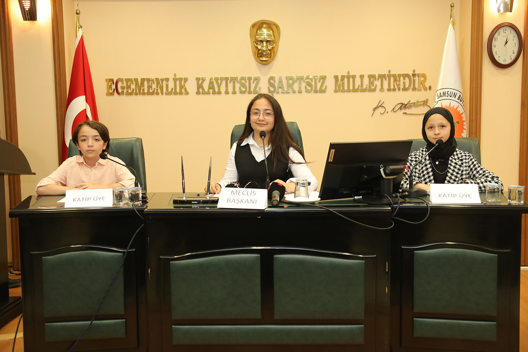 Samsun Büyükşehir Belediyesi tarafından ‘23 Nisan Ulusal Egemenlik ve Çocuk Bayramı’ nedeniyle düzenlenen ‘Çocuk Meclisi’ programı Büyükşehir Belediyesi Meclis Salonu’nda gerçekleştirildi. 17 ilçeden gelen 87 öğrencinin katılımıyla gerçekleştirilen ‘Çocuk Meclisi’ programına Samsun Büyükşehir Belediye Başkanı Halit Doğan, İl Milli Eğitim Müdürü Dr. Murat Ağar ile Büyükşehir Belediyesi bürokratları katıldı. Program Çocuk Meclisi Başkanı 8. Sınıf öğrencisi Emine Gül Can tarafından okunan bildiri ile başladı. Bildiride şu ifadeler yer aldı: