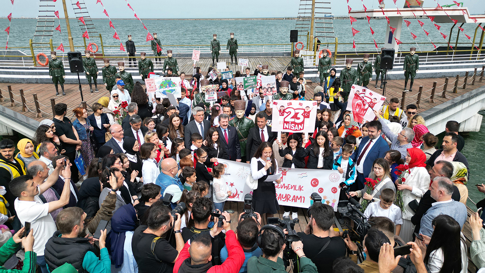 Bugün, sadece Ulusal Egemenlik ve Çocuk Bayramı'nı kutlamakla kalmayacağız. Bugün, barışın ve kardeşliğin önemini bir kez daha ve güçlü bir şekilde vurgulamak için buradayız. Barış, dünyayı daha güzel ve anlamlı kılan en önemli değerlerden biridir. Ancak, dünyanın birçok köşesinde çocuklar savaşın acımasız gerçeğiyle yüzleşmek zorunda kalıyorlar. Filistin’de, Gazze’de ve dünyanın birçok yerinde, çocuklar temel yaşam haklarını bile koruyamıyorlar. Bu acı gerçekler karşısında, barışın önemi bir kez daha ortaya çıkıyor. Mustafa Kemal Atatürk'ün ‘Yurtta Barış, Dünyada Barış’ sözünü hatırlatarak, barışın dünyaya gelmesi için dua ediyoruz.