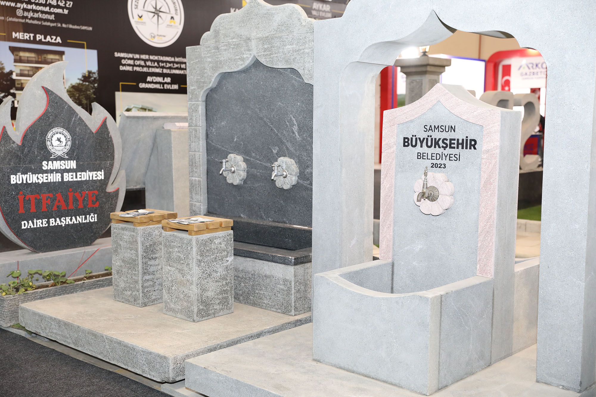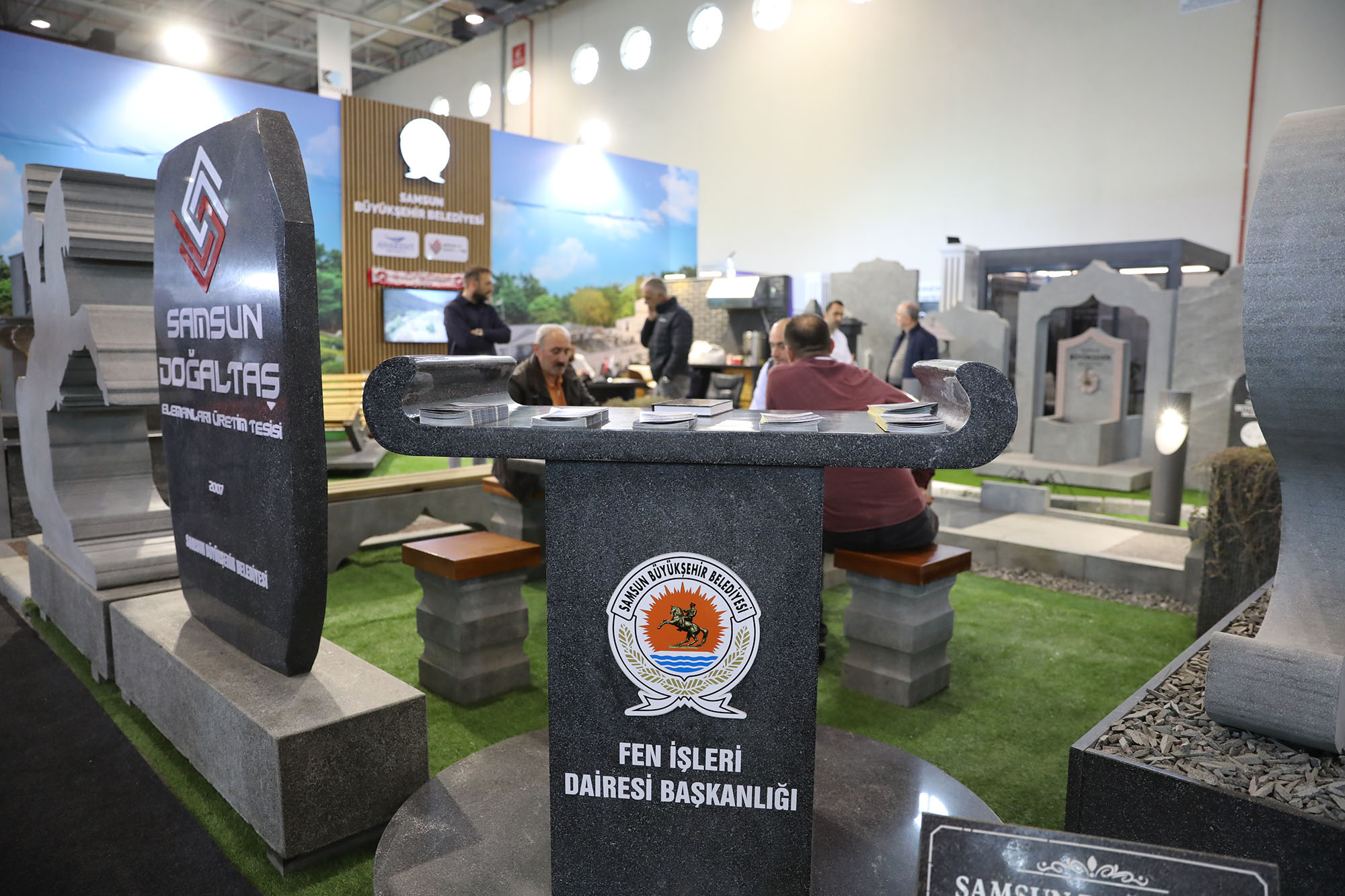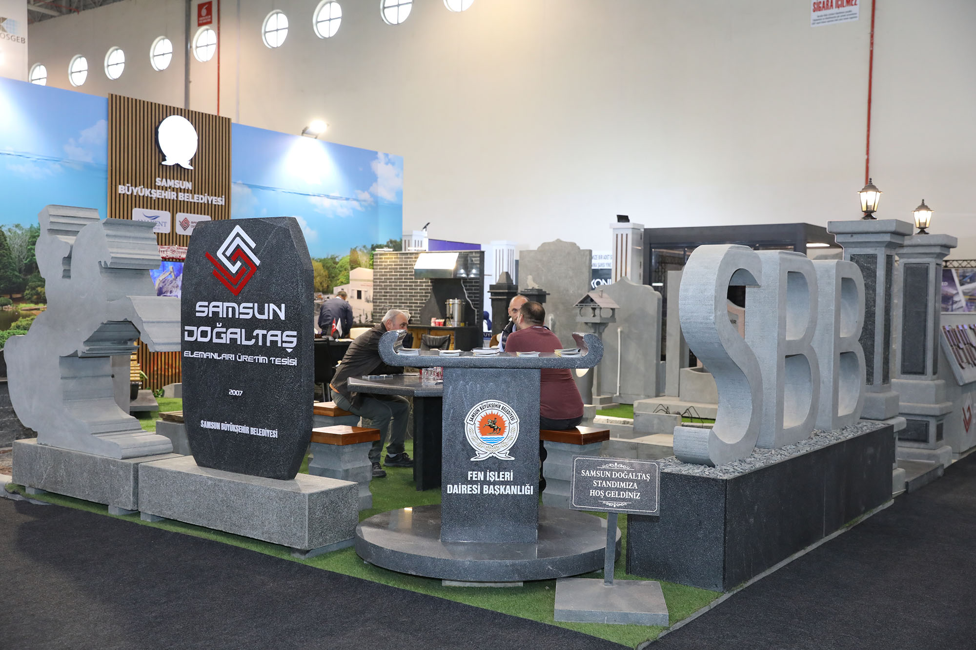 2 - 5 Mayıs 2024 tarihleri arasında TÜYAP Samsun Fuar ve Kongre Merkezi'nde 8. kez düzenlenen Yapı, İnşaat Malzemeleri, Asansör, Tesisat, Isıtma, Soğutma, Havalandırma, Doğalgaz ve Teknolojileri Fuarı’nda Samsun Büyükşehir Belediyesi de kurduğu stantla yer aldı. Gürcistan, Azerbaycan, Rusya, Ukrayna, Ortadoğu ve Türki Cumhuriyetler başta olmak üzere birçok ülkeden ziyaretçinin de ağırlandığı fuarda Büyükşehir Belediyesi’nin standı ilgi gördü. Büyükşehir Belediyesi’nin Doğaltaş Elemanları Üretim Fabrikası’nda üretilen ürünleri oldukça dikkat çekti. Fuarda yer alan ürünlerle ilgili bilgi veren Samsun Büyükşehir Belediyesi Doğal Taş Elemanları Üretim Tesisi Şube Müdürü Emre Şirin, “TÜYAP’ ta standımızda granitten ürettiğimiz kent mobilyaları, yer döşemeleri, hayrat çeşmeleri, peyzaj ürünleri şeklindeki ürünlerimiz ile yer aldık. Büyükşehir Belediyesi olarak kendi maden sahamızda kendi işçilerimiz ile Doğaltaş Elemanları Üretim Tesisimizde 2 boyutlu olarak ürettiğimiz ürünleri burada sergiledik. Çok geniş bir ürün gamımız var. Yaklaşık 40 çeşit ürün üretiyoruz. Fuarı ziyaret eden vatandaşlarımızın standımıza çok güzel bir ilgisi oldu” diye konuştu.