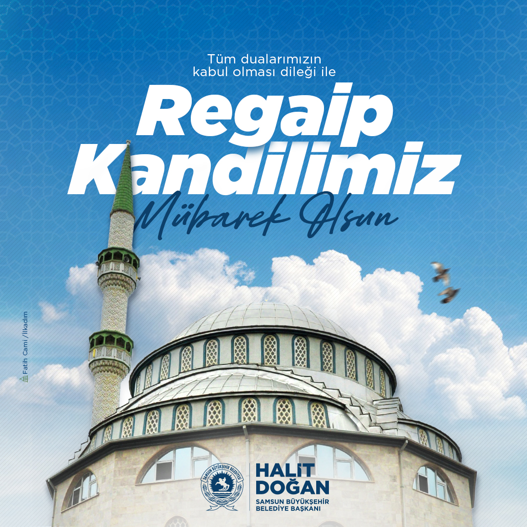 Samsun Büyükşehir Belediye Başkanı Halit Doğan, Regaip Kandili dolayısıyla bir mesaj yayımlayarak üç ayların ve Regaip Kandili’nin tüm İslam alemine hayırlar getirmesini diledi.
