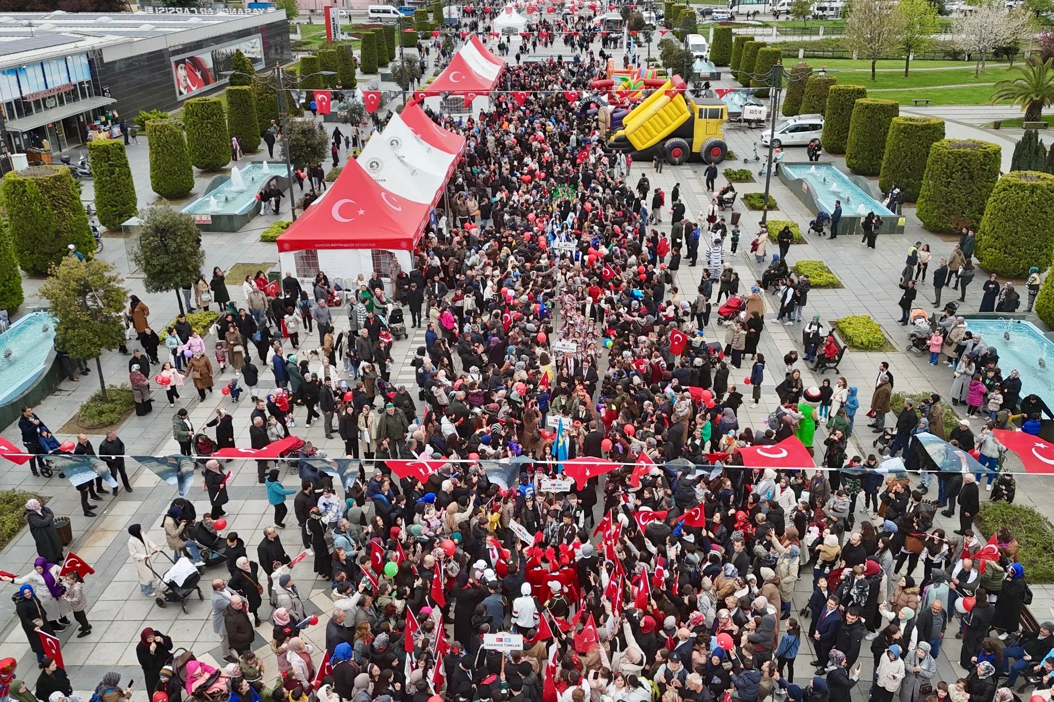 Samsun, 23 Nisan Ulusal Egemenlik ve Çocuk Bayramı kapsamında Türk Dünyası'nın farklı coğrafyalarından gelen çocukları ve protokol üyelerini ağırladı. Samsun Büyükşehir Belediyesi öncülüğünde düzenlenen Türk Dünyası Çocuk Festivali kentteki 23 Nisan sevincini taçlandırdı. Festivalin son gününde Kurtuluş Yolu'nda kurulan stantlarda çocuklar doyasıya eğlendi. Şişme oyun parklarından atölye etkinliklerine, palyaçodan yüz boyamaya birçok detay çocuklar için özel olarak hazırlandı. Tüm çocukların eğlenceye doyduğu şenlikte, Büyükşehir Belediyesi tarafından vatandaşlara çeşitli ikramlar yapıldı.