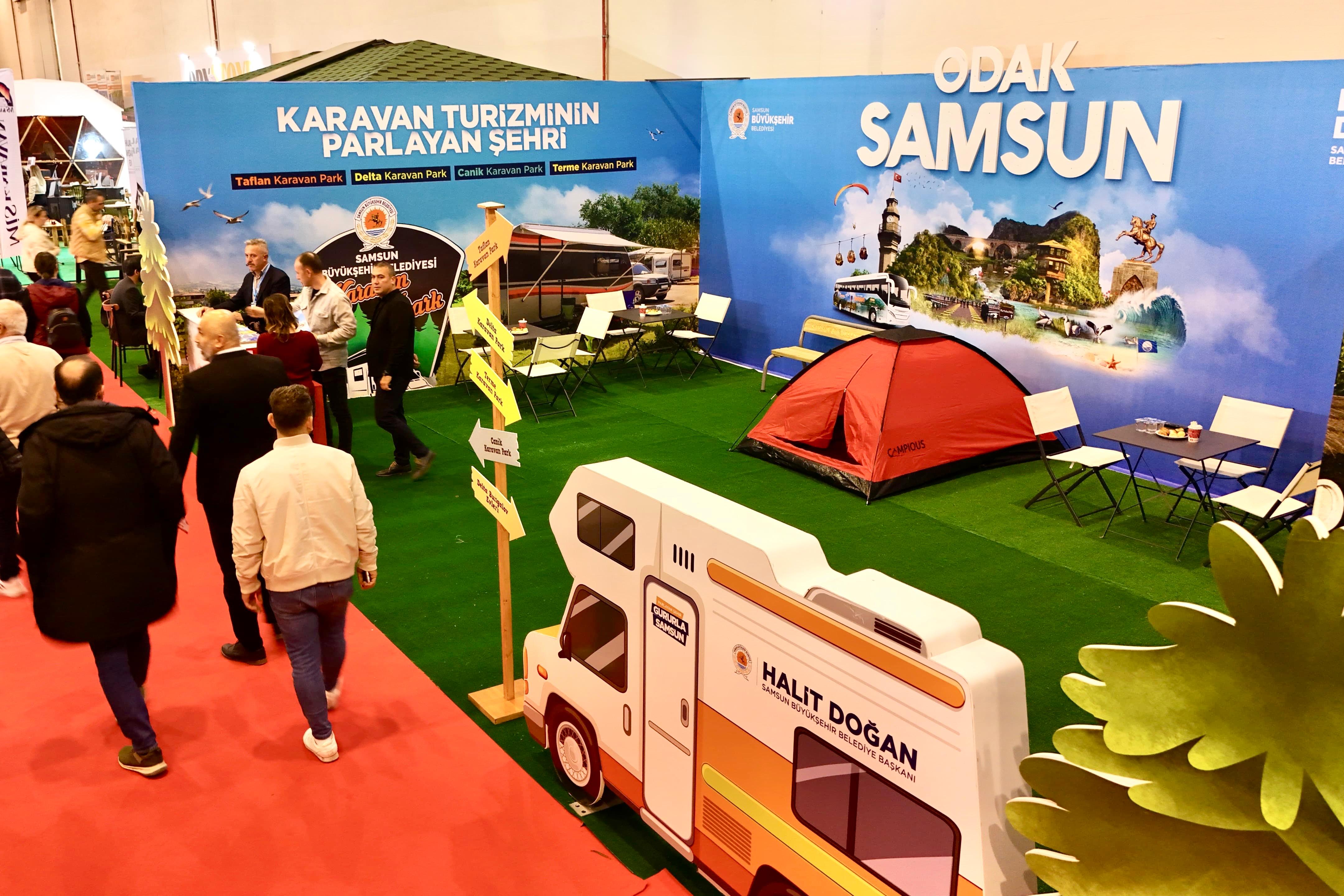 "Doğaseverler Karadeniz'i keşfe çıkıyor" sloganıyla organize edilen kamp, karavan ile doğada yaşama dair tüm ürünlerin ve çözümlerin sergilendiği “Samsun Karavan Fuarı”nın en ilgi gören stantlarından biri Samsun Büyükşehir Belediyesi’nin standı oluyor. Samsun’un karavan turizminin parlayan şehri olması adına önemli rol üstlenen ve birçok noktadaki karavan park alanında her yıl binlerce yerli ve yabancı turisti ağırlayan Büyükşehir Belediyesi; fuarın da gözdesi oluyor, Samsun’un karavan park alanlarını tanıtıyor.