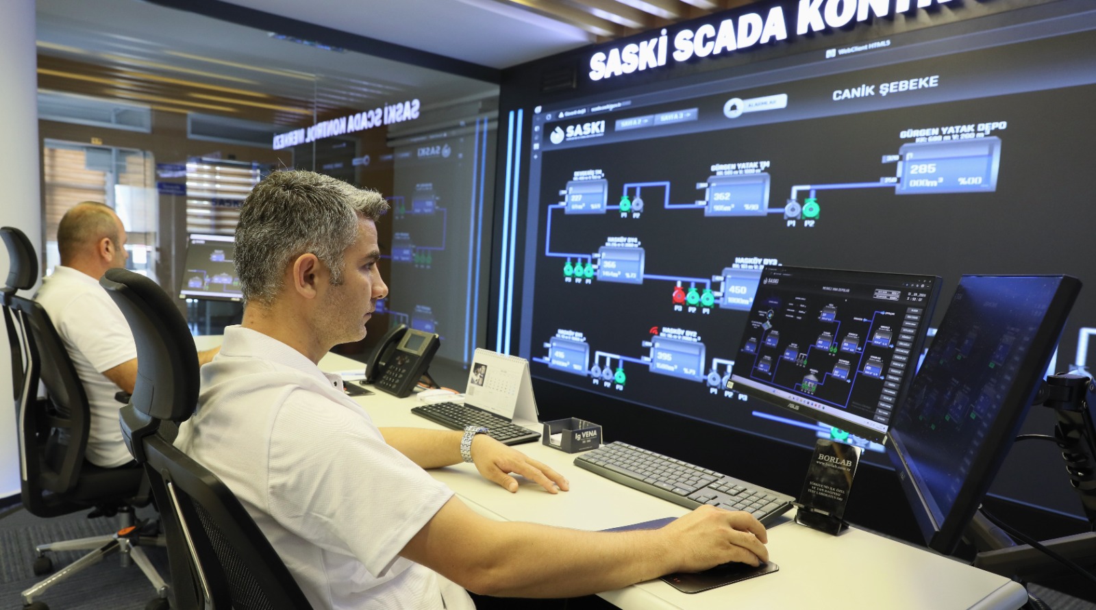 Bir yandan 17 ilçede altyapı yatırımlarını aralıksız sürdüren Büyükşehir Belediyesi SASKİ Genel Müdürlüğü, diğer taraftan gelişen teknoloji kapsamında, vatandaşların hizmete erişimini kolaylaştırıyor. ‘Yönetsel Denetim ve Veri Elde Etme Sistemi’ (SCADA) ile pompa istasyonları, su depoları, arıtma tesisleri, terfi merkezleri gibi birçok tesisini 24 saat gözetim altında tutan SASKİ, aynı anda 10 bağımsız SCADA ekranının açılabildiği endüstriyel izleme sistemi kurarak SCADA Sistemi'nin teknolojik altyapısını daha da güçlendirdi. Yapılan yenileme çalışmaları ile anlık takibi yapılması gereken istasyonların SCADA operatörlerince takibi kolaylaştırıldı. Aynı zamanda SCADA sisteminin alarm yönetimi iyileştirilerek arıza bildirim süreleri asgari düzeye indirildi.