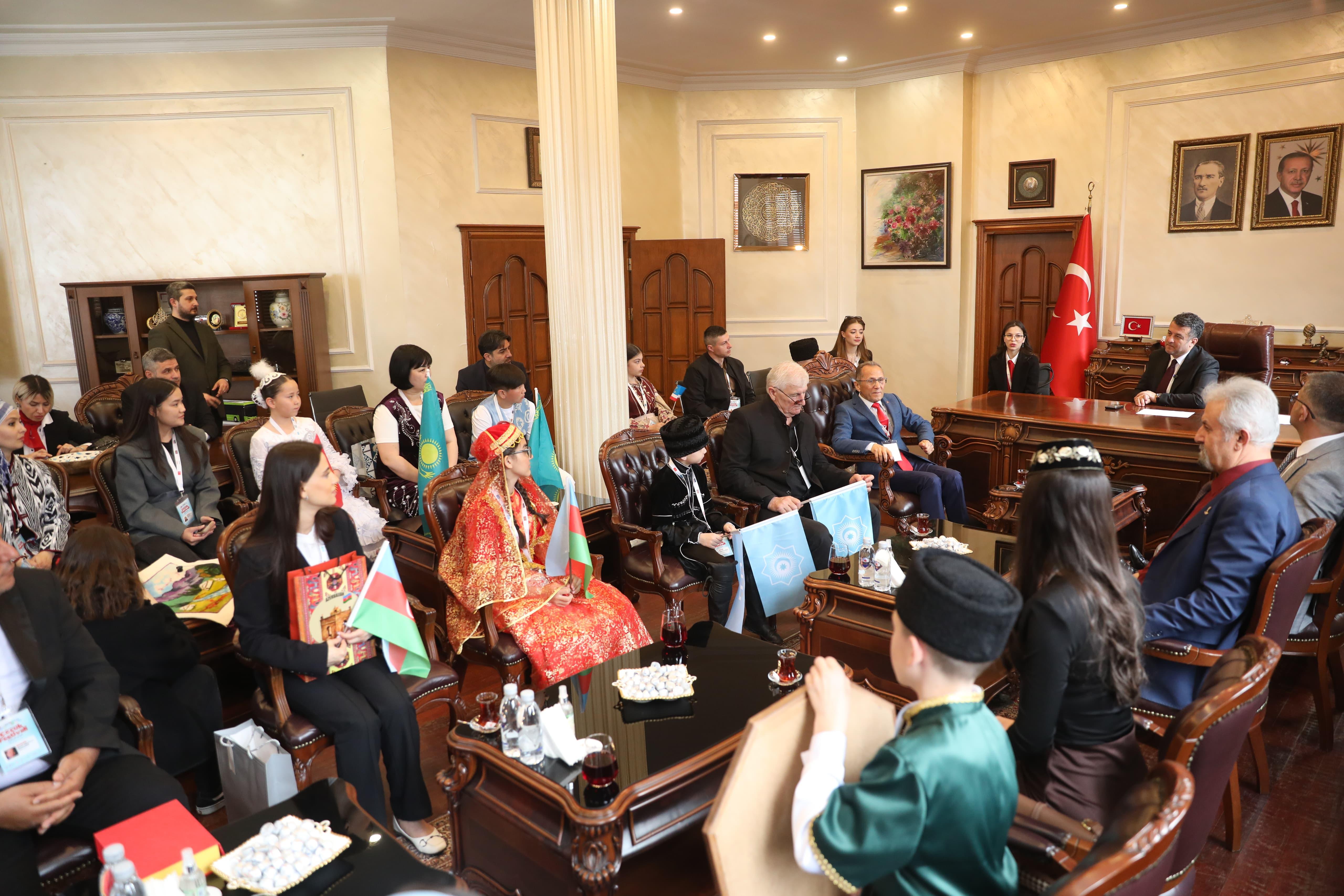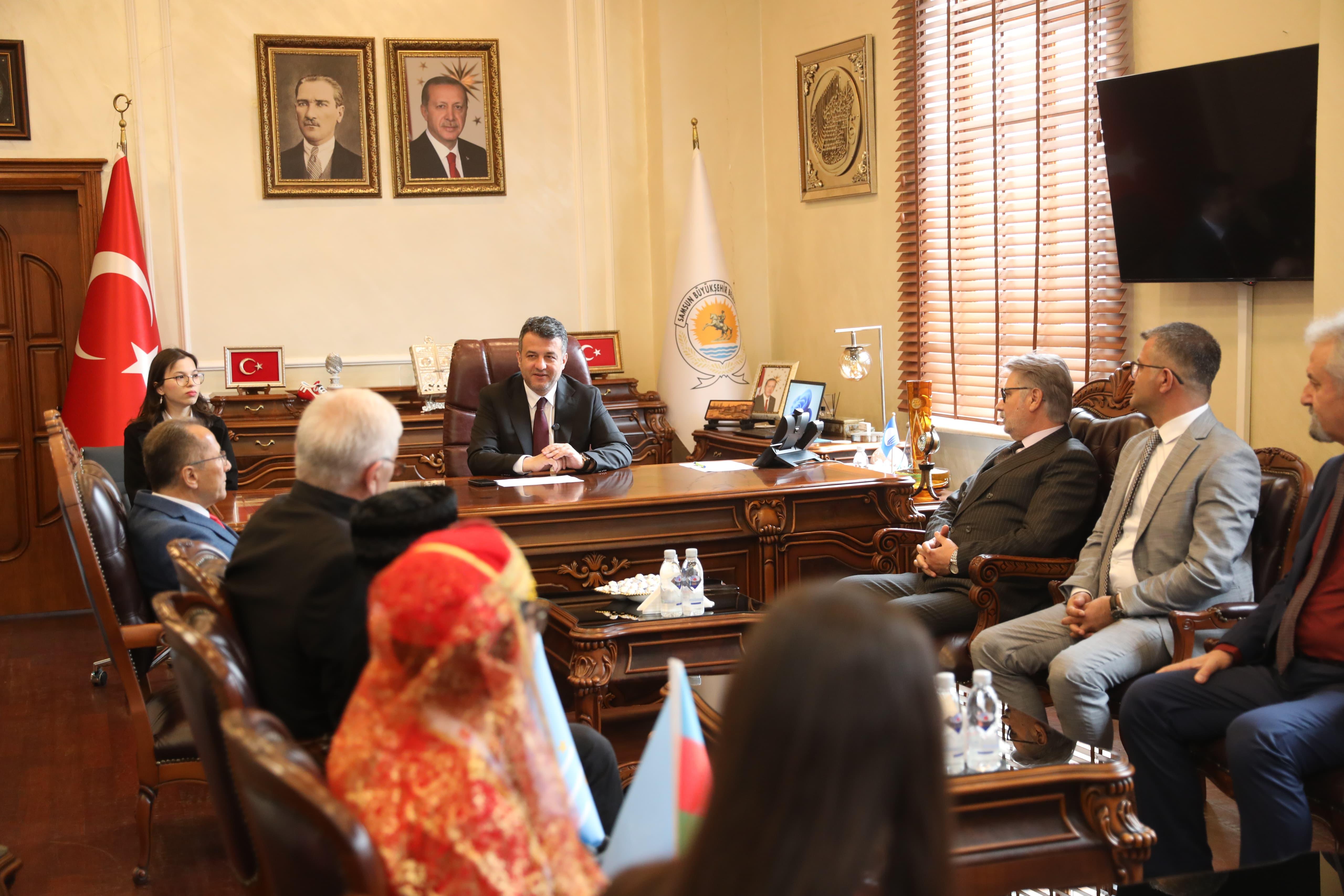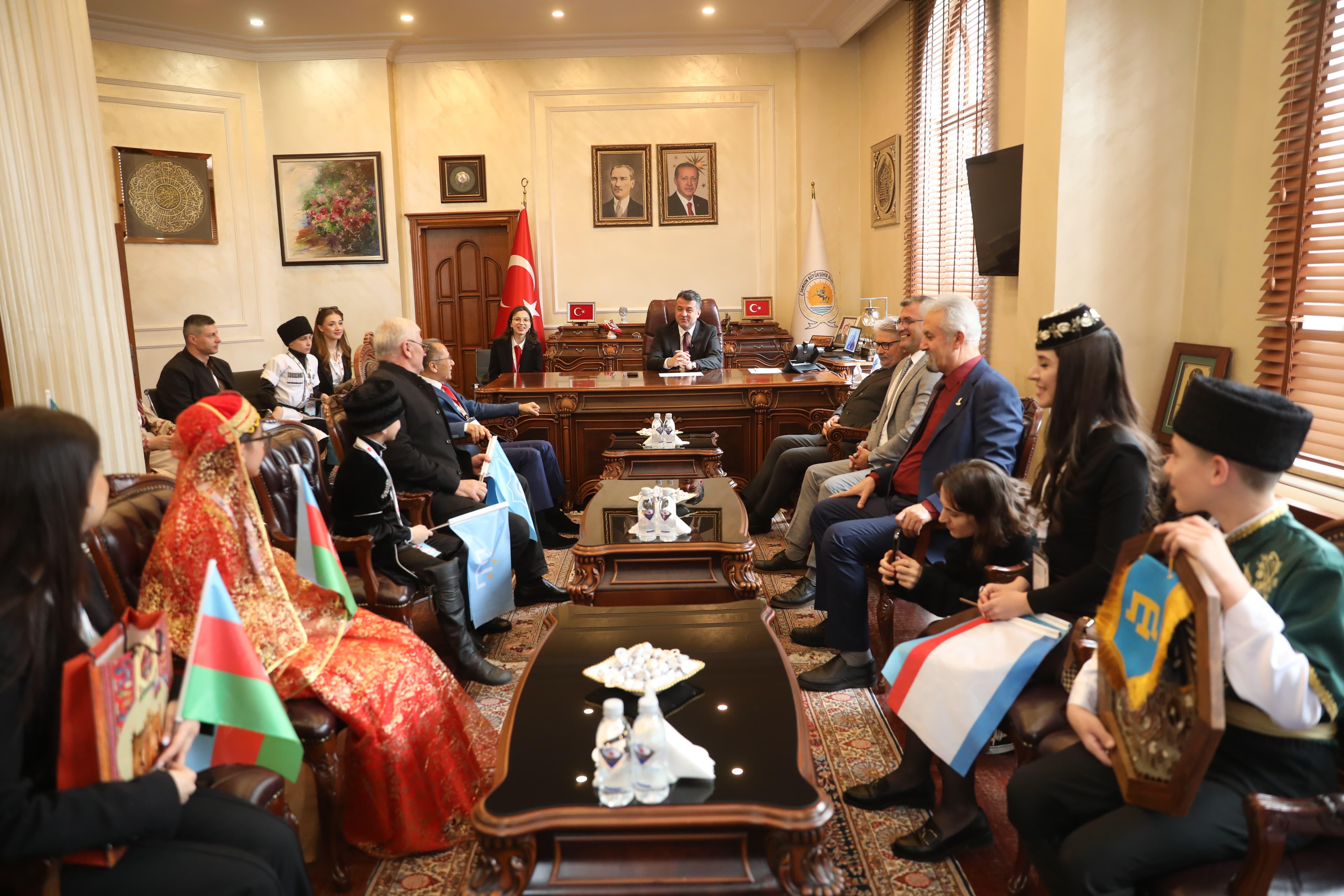 Samsun’da Türk Dünyası Çocuk Festivali heyecanı tüm hızıyla sürerken 9 ülkeden gelen misafirler Samsun Büyükşehir Belediye Başkanı Halit Doğan’ı makamında ziyaret etti. Başkan Doğan, minik öğrencilerle tek tek ilgilenerek onları Samsun’da ağırlamaktan duyduğu memnuniyeti dile getirdi. Öğrenciler Başkan Doğan’ı ziyaretlerinin ardından festivalin ikinci gün etkinlikleri için Bulvar AVM meydanında buluştu.