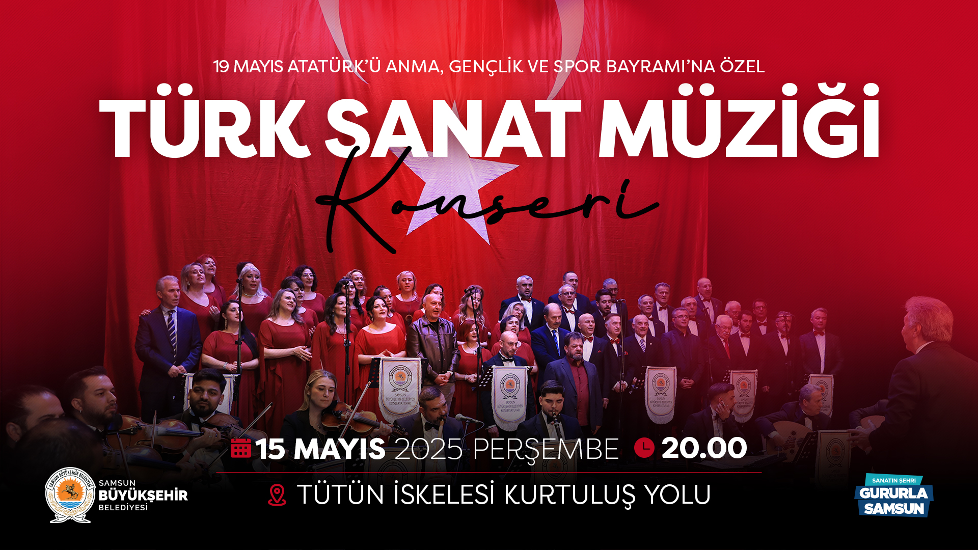 Samsun Büyükşehir Belediyesi Milli mücadelenin simge şehirlerinden biri olan Samsun’da anlamlı bir etkinliğe daha imza atıyor. Bu kapsamda Büyükşehir Belediyesi tarafından 19 Mayıs Atatürk’ü Anma, Gençlik ve Spor Bayramı’na özel Türk Sanat Müziği Konseri gerçekleştiriliyor. Bu akşam (15 Mayıs Perşembe) saat 20.00’de Tütün İskelesi Kurtuluş Yolu’nda gerçekleşecek konser katılımcılara müzik ziyafeti yaşatmaya hazırlanıyor.