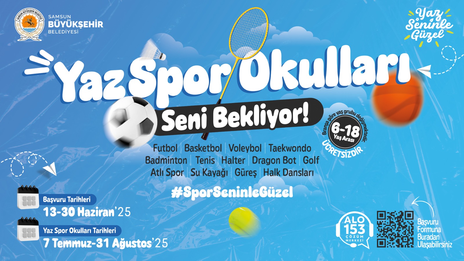 Samsun Büyükşehir Belediyesi tarafından organize edilen Yaz Spor Okulları’na katılmak isteyen öğrenciler, 13-30 Haziran 2025 tarihleri arasında “sporokullari.samsun.bel.tr” adresi üzerinden başvurularını gerçekleştirebilecek. Vatandaşlar ALO 153 Çözüm Merkezi’ni arayarak detaylı bilgi alabilecekler.