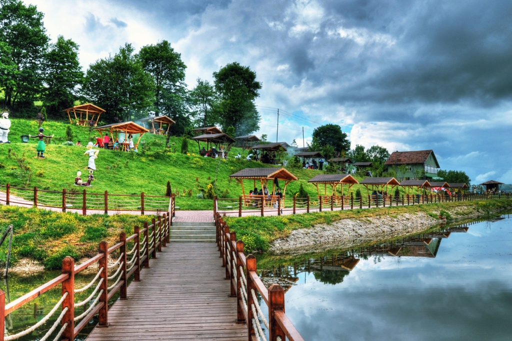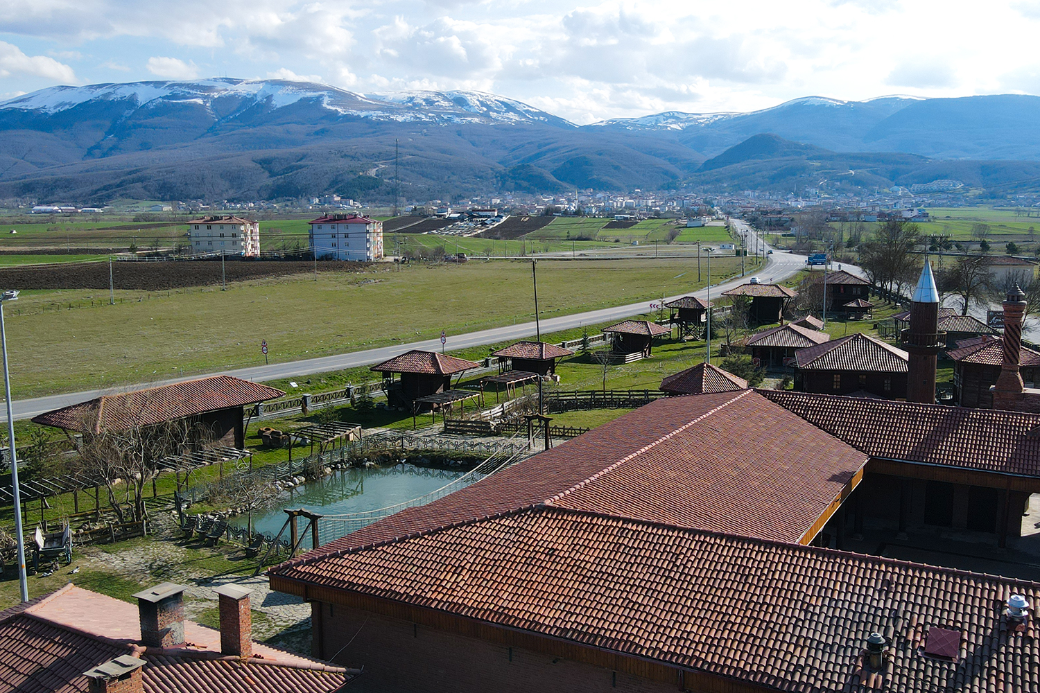 Dünya’da başka bir örneği bulunmayan köyde; içinden akan deresi, gölü, su değirmeni, seyir kulesi, ahşap çocuk oyun parkı, ahşap ve zincirli köprüleri ve külliyesi ile doğal yaşam olduğu gibi yansıtılıyor.