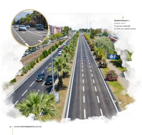 Atatürk Bulvarı'nı baştan sona 17 günde yeniledik. 32.000 ton asfalt döktük. 46