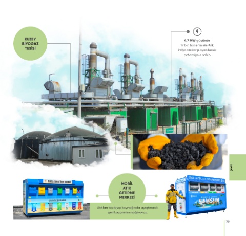 KUZEY 4,7 MW gücünde BİYOGAZ 17 bin hanenin elektrik TESİSİ ihtiyacını karşılayabilecek potansiyele sahip çevre MOBİL ATIK GETİRME MERKEZİ Atıkları toplayıp kaynağında ayrıştırarak geri kazanımını sağlıyoruz. 79