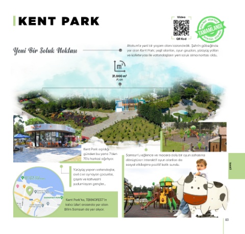 Yeni Bir Soluk Noktası yer alan Kent Park; yeşil alanları, oyun grupları, yürüyüş yolları