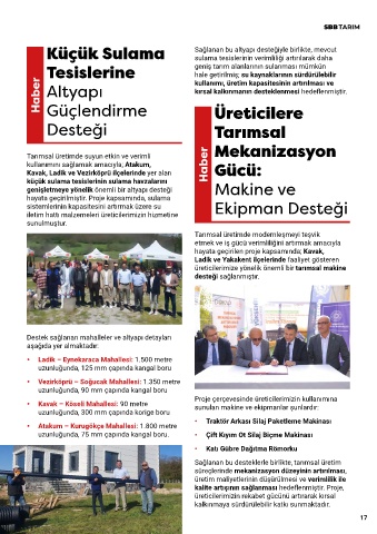 Küçük Sulama Sağlanan bu altyapı desteğiyle birlikte, mevcut