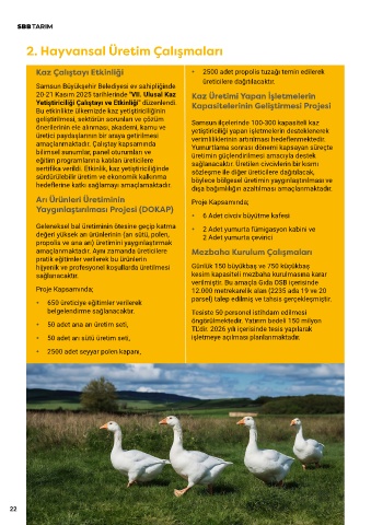 geliştirilmesi, sektörün sorunları ve çözüm Samsun ilçelerinde 100-300 kapasiteli kaz