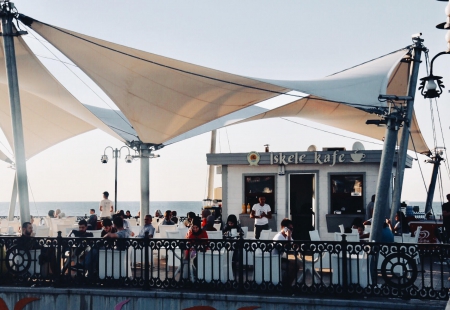 Çobanlı İskelesi’nin ucunda bulunan Çobanlı İskele Kafe, başta Atakumlular olmak üzere tüm Samsunluların tercih ettiği en gözde dinlenme ve seyir mekanlarından birisi. Samsunlu vatandaşların günden güne daha sık ziyaret ettiği mekanlardan biri olan Çobanlı İskele Kafe her gün yaklaşık olarak 200 aile ağırlıyor. Samsunluların ve Samsun’a şehir dışından gelen herkesin ilgi odağı olan tesis, Karadeniz Bölgesi’nde tek olma özelliği de taşımaktadır.. Çobanlı mevkiindeki denizin ortasında dinlenme olanağı sağlayan kafeye gidenler kıyıya oldukça uzak olduğu için kıyı havası değil, bildiğiniz teknede gibi deniz havası almaktadırlar. Üstelik şehrin hiçbir gürültüsü de buraya ulaşmıyor. Buraya gelenlerin duyduğu tek ses deniz uğultusu ve doğal serinlik. Denizin ortasına iskele ile inşa edilen İskele Kafe, özellikle sabah fotoğrafçılarının da uğrak yeri oluyor. Gün doğumu manzarası için özellikle sabah çok erken saatlerinde fotoğrafçılar buraya gelerek gün doğumunu fotoğraflıyorlar. Özellikle yeni evlenen çiftlerimizin düğün fotoğrafları da burada çekildiği oluyor. İnsanlar eşsiz deniz havasında çaylarını yudumlarken aniden bir yunus sürüsünün sesini duyabiliyor ve yunusların zıplamalarını izleyebiliyorlar. Keza kefaller de aynı şekilde. Denizin dibi o kadar berrak ki, çay içerken baktığınızda sürü halinde geçen balıkları görebiliyorsunuz. Ayrıca çay kahve ve diğer meşrubatların yanında tost hamburger nugget gibi ürünleri de tercih ediyorlar. Tüm bunların yanında, sabah kahvaltı tabağımız da bulunmaktadır.
